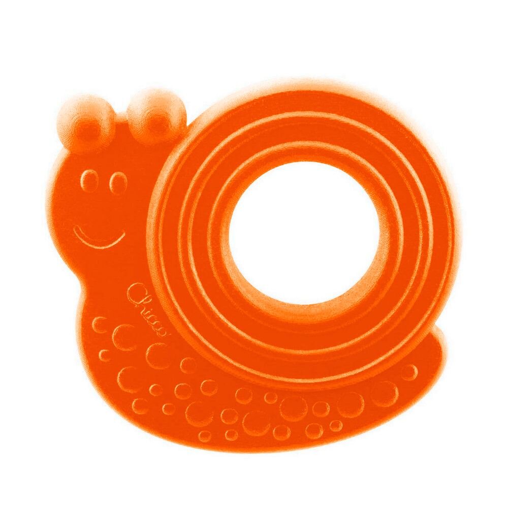 Помаранчевий гризунок у вигляді усміхненого равлика має рельєфну поверхню, щоб масажувати ясна та зменшувати свербіж під час прорізування перших зубів. Його зручно тримати у маленькій долоні, бо оснащений ручкою.