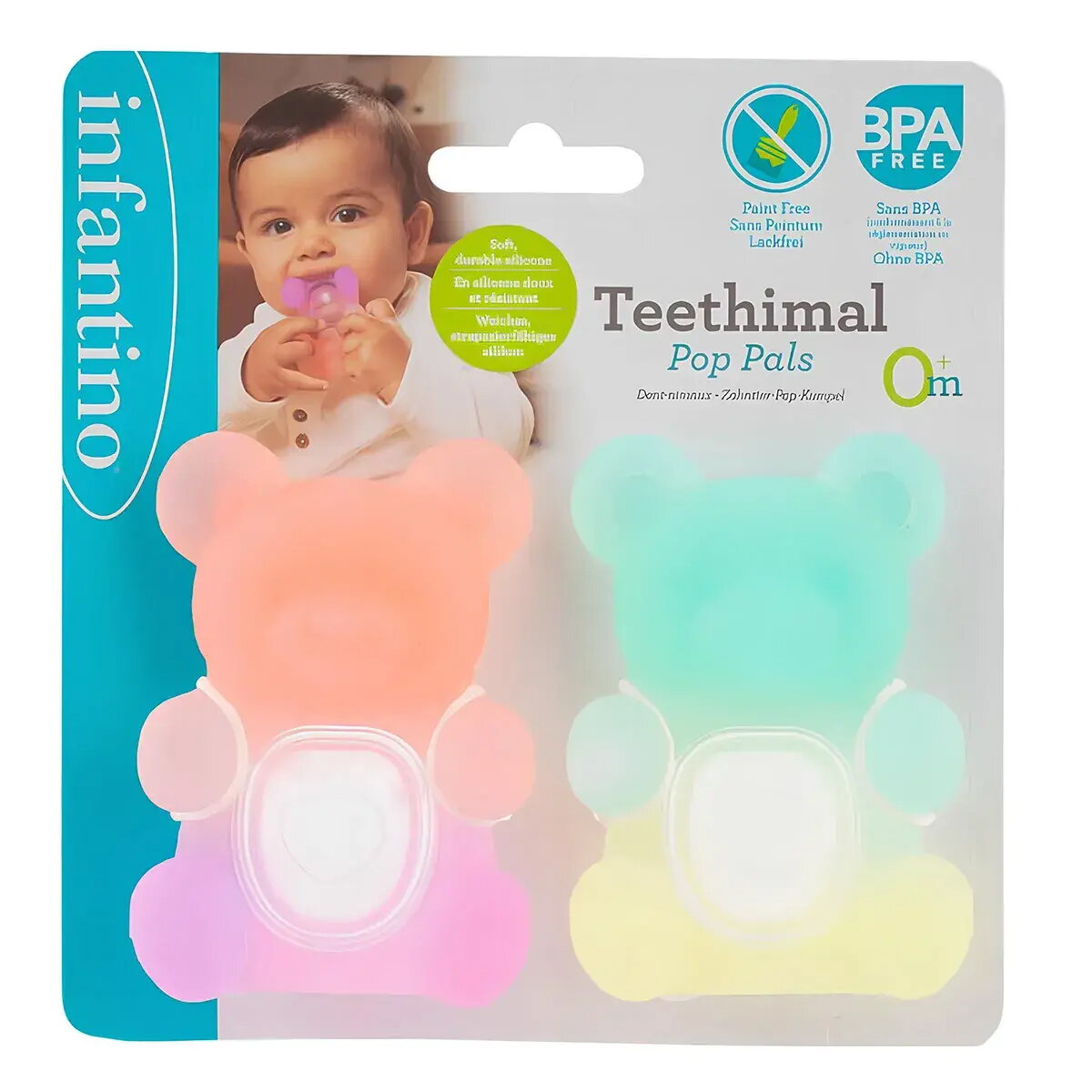 Функція «поп» сприяє розвитку тактильного сприйняття та дрібної моторики. Завдяки зручному розміру прорізувач легко тримати маленькими руками, стискати та досліджувати.