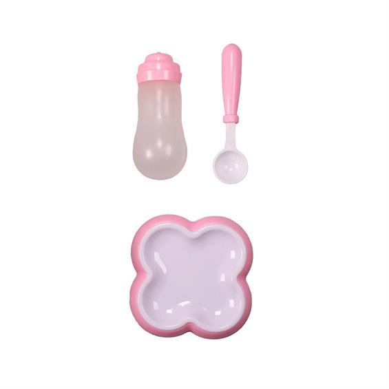 У наборі: пупс; стільчик для годування; тарілочка з ложкою; пляшечка.
