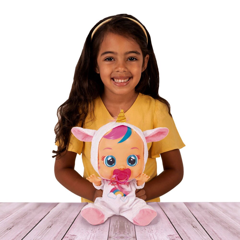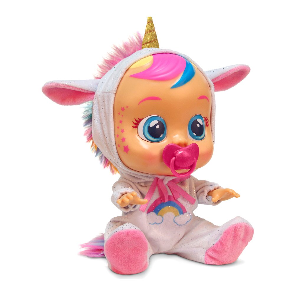 Лялька плакса IMC Toys Cry Babies Дрімі — просто чудовий подарунок для маленької принцеси, яка обожнює гру «доньки-матері». Дрімі одягнена в кумедний карнавальний комбінезон єдинорога із плюшу. Вона вміє плакати «справжніми» сльозами до 10 секунд, а також оснащена звуковими ефектами.