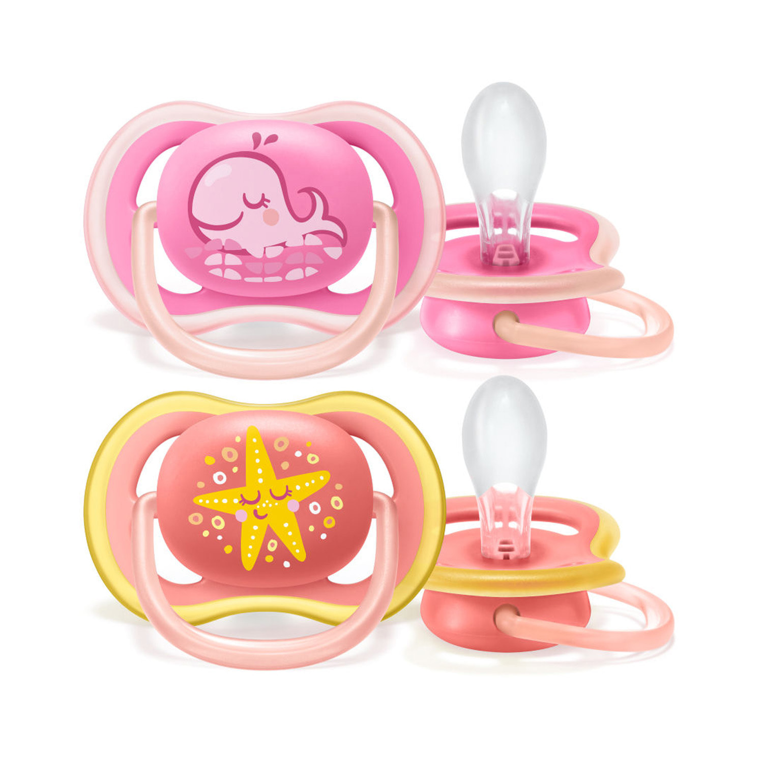 Характеристики: Дає шкірі малюка дихати. Ортодонтичні, для дітей від народження, без бісфенолу А, 2 шт. в упаковці. Великі отвори для повітря дбайливо провітрюють шкіру малюка, забезпечуючи її м'якість і сухість. Ідеальна текстура для повного комфорту. Пустушка ultra air з приємною на дотик соскою створена для легкого та комфортного використання.