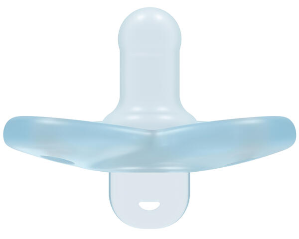 На 100% із медичного силікону. Симетрична форма піклується про здоровий розвиток ротової порожнини дитини. Легко мити, вода не потрапить у соску. Для екстраочищення — можна використовувати стерилізатор. Спеціальна дірочка для пальця, щоб мати контакт із дитиною.