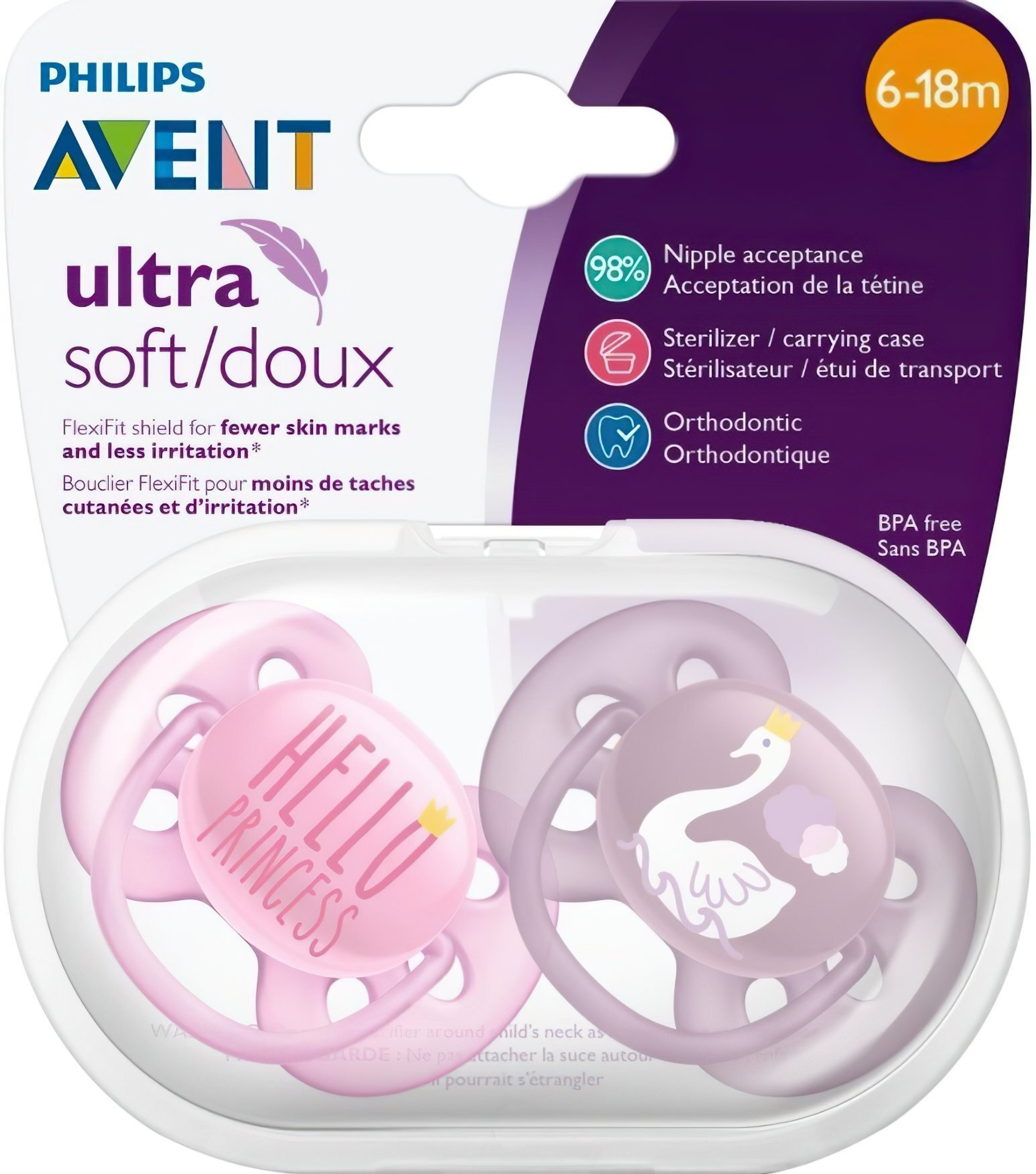 Неймовірно м'яка пустушка підходить для ніжної шкіри малюка. Ультрам'якого і гнучкий виріб. Ортодонтичні пустушки, без бісфенолу-А, 2 шт. в упаковці.