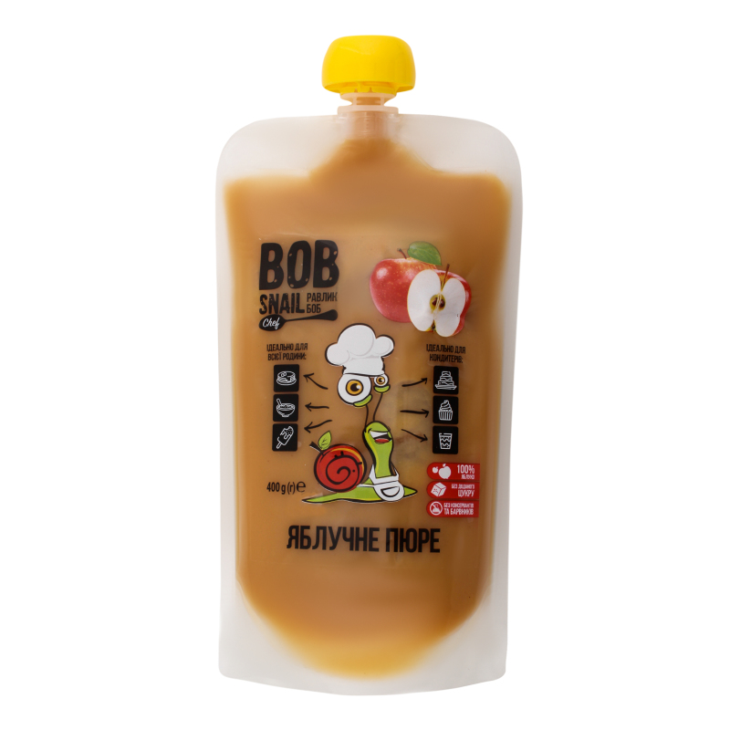Фруктове пюре від "Равлика Боба" - натуральний, корисний та смачний перекус для малюків старше року. Містить яблучне (100%) пюре. Без цукру, ароматизаторів, барвників. Зберігається у зручній упаковці "пауч" з закруткою.