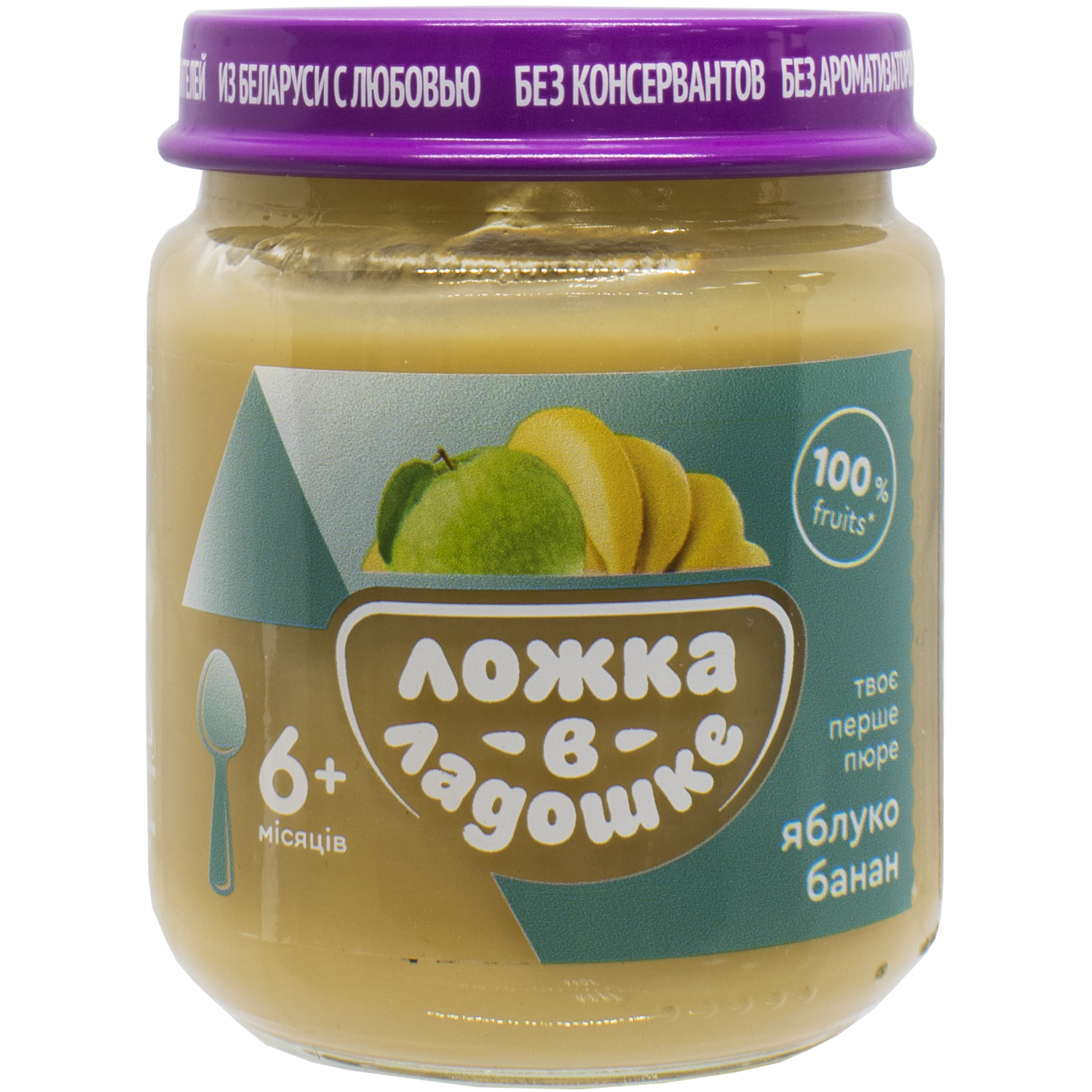 Пюре з яблук і банана гомогенізоване стерилізоване для харчування дітей віком з 6 місяців.