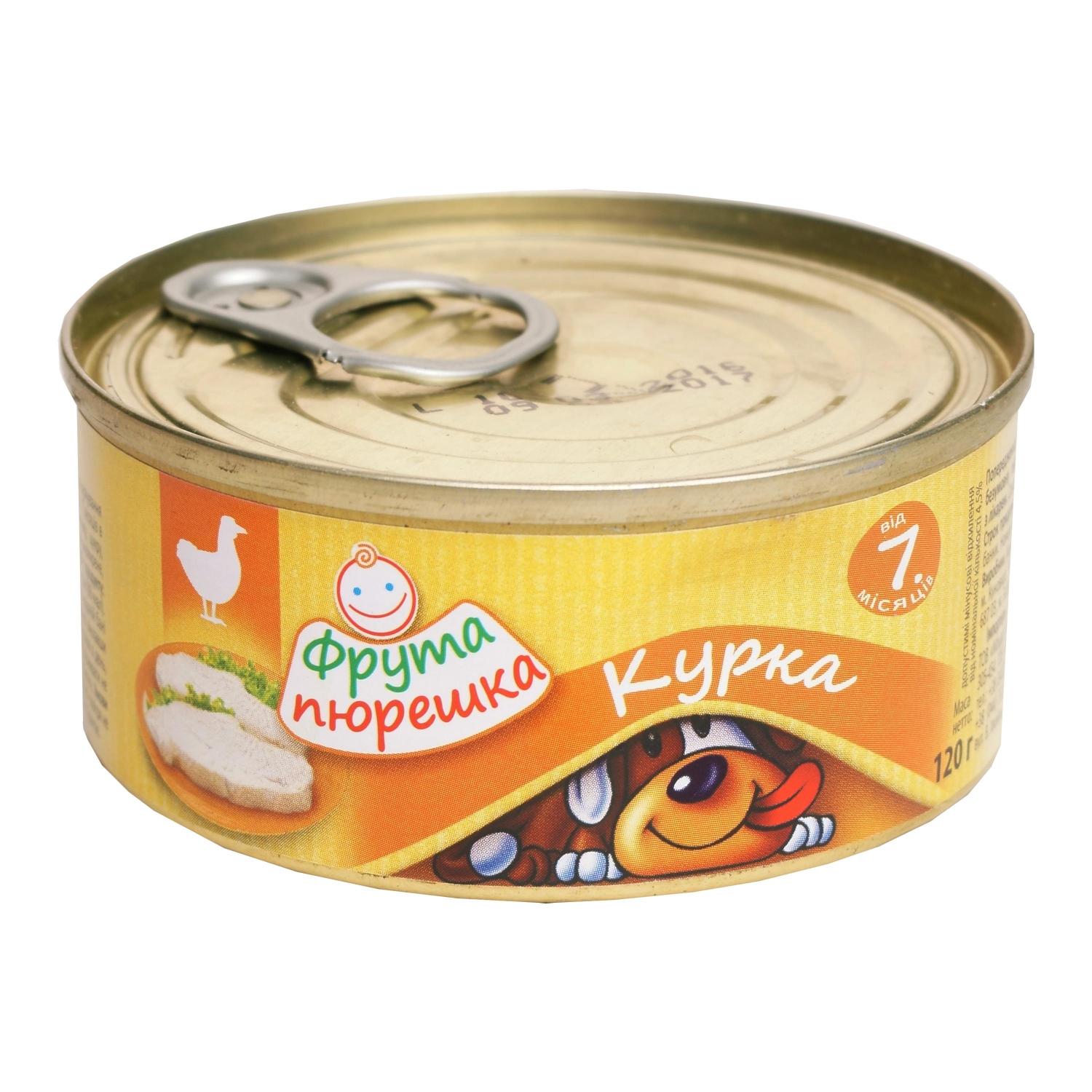 Пюре з курки можна вносити в раціон дитини, починаючи із 7 місяців. М'ясо курки збагачене легкозасвоюваними білками, містить велику кількість вітамінів: В12, В6, В9, заліза, фосфору, калію, селену, кальцію, магнію й міді. Головна користь курячого м'яса у тваринному білку, який дуже важливий для здоров'я малюка. Пюре гомогенізоване та стерилізоване. Продукт готовий до вживання.