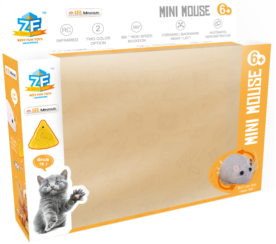 У наборі є легкий та зручний пульт, що дозволяє керувати цією моделлю на відстані. Він виглядає точнісінько як шматочок сиру. Натисніть на кнопку, щоб іграшка попрямувала вперед або назад, повернула вліво або вправо або почала обертатися на місці. Живлення від батарейок. Шість елементів типу AG13 входить до комплекту.