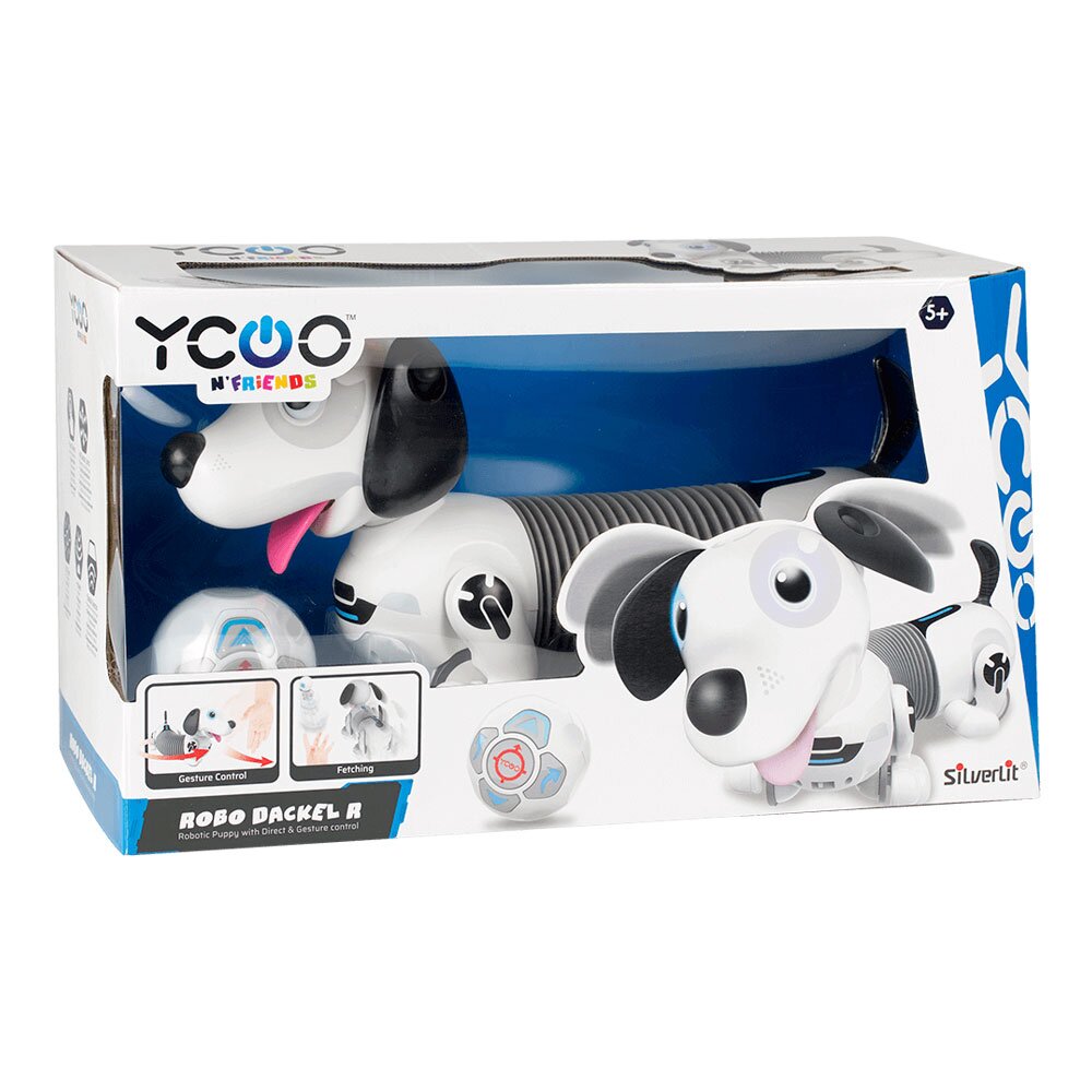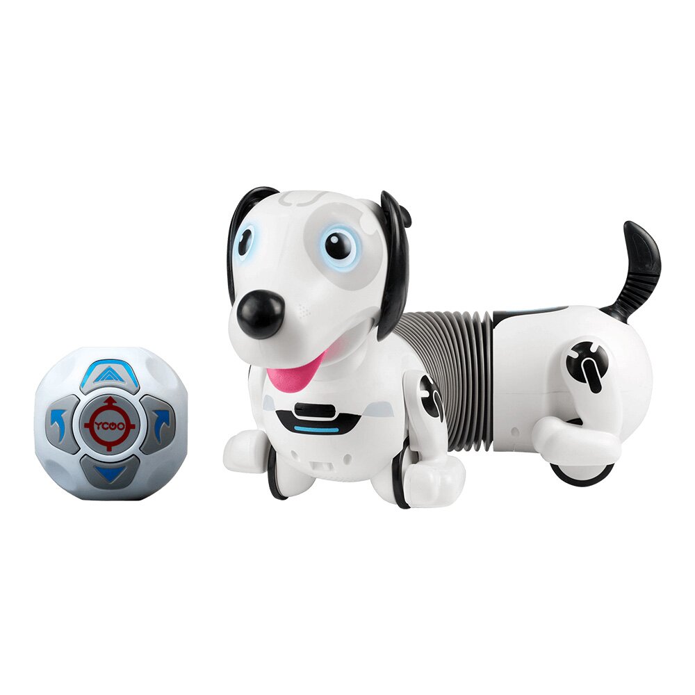 Робот-собака Silverlit DACKEL R — чудовий подарунок для дитини, яка захоплюється технікою та любить тварин. Особливості робота: ним можна керувати пультом у формі м'ячика; очі світяться; собака обожнює наздоганяти м'яч; обладнано звуковими ефектами; варто провести рукою перед мордочкою пса — і він почне ганятися за своїм хвостиком; якщо покласти руку на груди, то робот почне її облизувати; іграшка розтягується до 26 см; собаки вміють взаємодіяти один із одним.