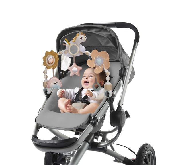 Дуга має універсальні кріплення для зручного використання на візочку, автокріслі або люльці.