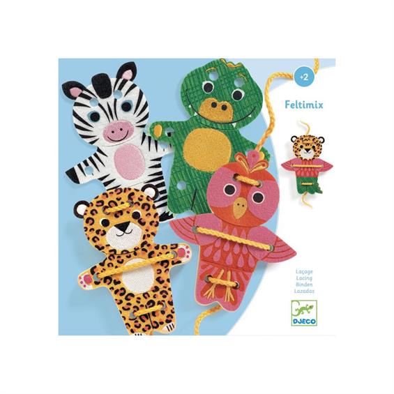 У грі передбачені різні кольори для кожної тварини для легкого розпізнавання, вишитий фетр для вивчення матеріалів. Гра весело навчає дітей техніці шнурівки, розвиває дрібну моторику і логіку.