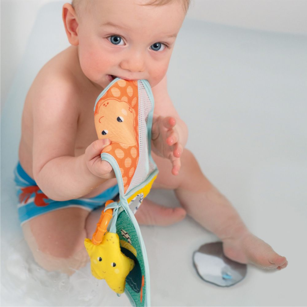 М'яка книжка "Субмарина" з тримачем-прорізувачем для зубів та безпечним люстерком зробить купання малюка веселішим.