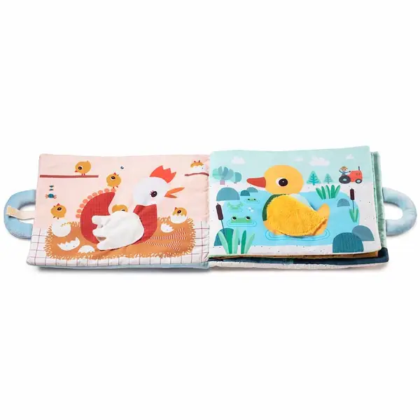 У корови, віслюка, вівці та людини можна дістати дитину з утроби матері у вигляді кишені, а у курки та качки - кишеня - це яйця, з яких вилуплюються пташенята. М'які іграшки також можна розмістити на задній обкладинці книги, де вони дізнаються про навколишній світ і локацію де живуть - ставок, галявина або ферма. Немовля можна взяти на прогулянку в колясці, яку штовхає старший брат.