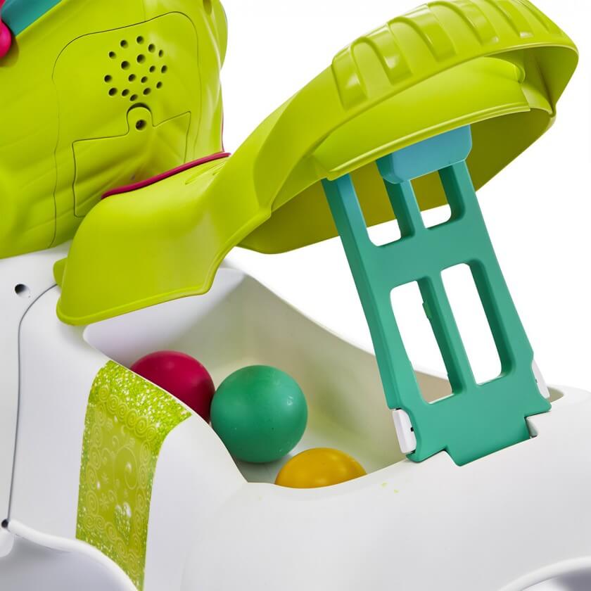 Розвиваючий центр Infantino Мій єдиноріг 3 в 1 дозволяє проводити 3 варіанти гри: грати сидячи, грати стоячи і кататися. Малюк, який ще не вміє ходити, буде вивчати кольори, числа, форми і багато іншого. Більш дорослої дитині центр допоможе впевнено робити свої перші кроки. Для цього можна регулювати швидкість коліс або включити блокування. Наступним етапом дитина зможе кататися верхи на конячці. Також можна грати з м'ячиками, вставляти їх, ловити, закидати за бортик, складати.