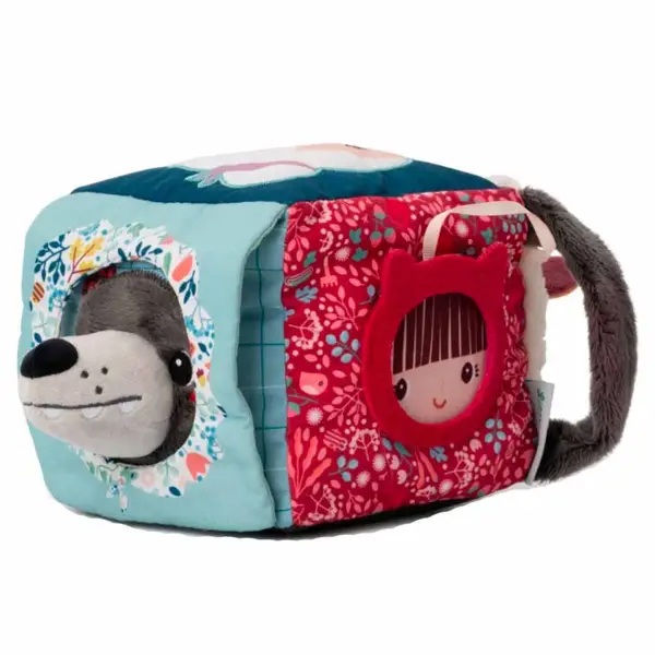 Розвиваючий куб Lilliputiens Вовк Луї (83464) з різними звуками, матеріалами та сюрпризом на кожній стороні. За віконцями ховаються Бабуся, вовк, Червона Шапочка та порося.