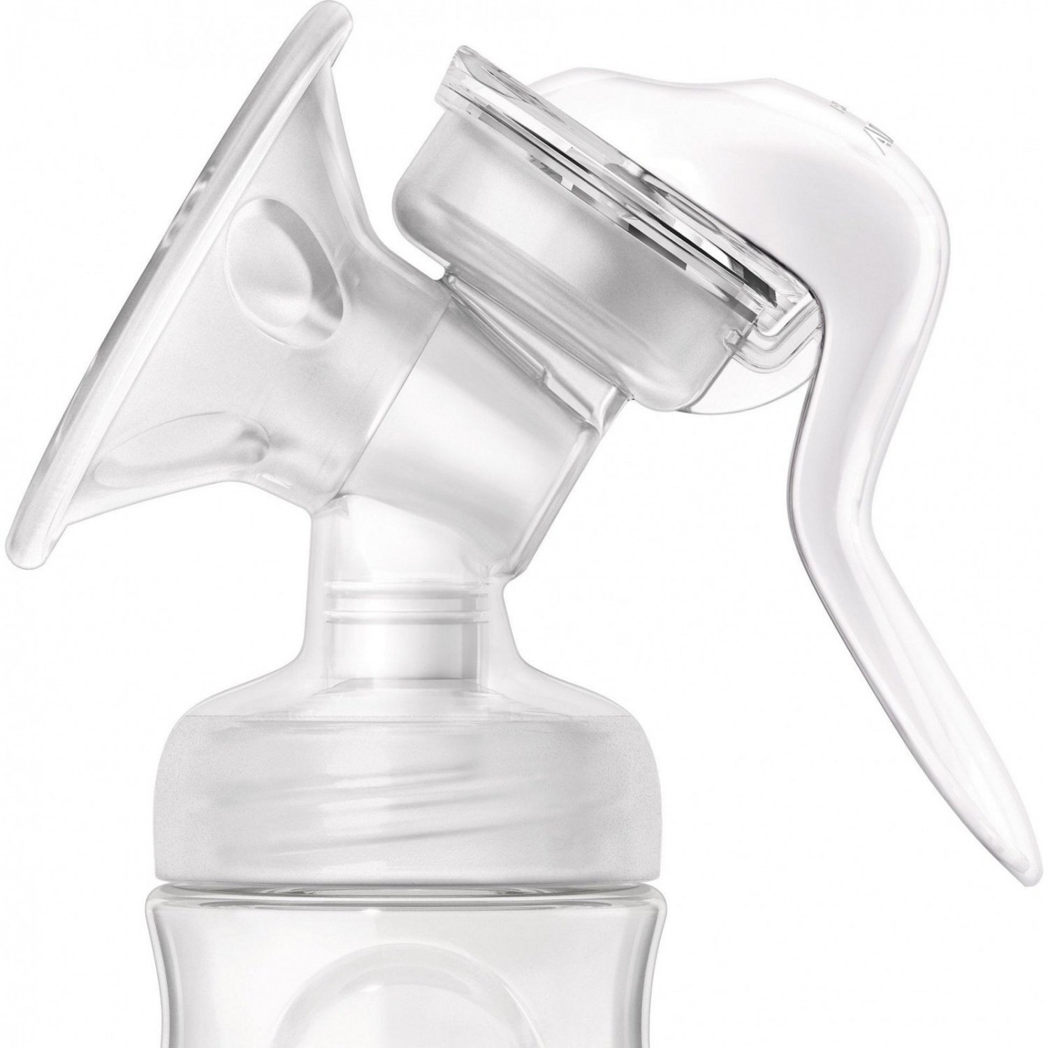 У комплекті: молоковідсмоктувача з ручкою. Насадка стандартного розміру. Пляшка серії Natural 125 мл. Ультрам'яка соска для новонароджених. Кришка для транспортування. Кришка для зберігання молока. Пробний комплект вкладок для бюстгальтера (2 вкладки для денної пори доби та 2 вкладки для нічної пори доби).