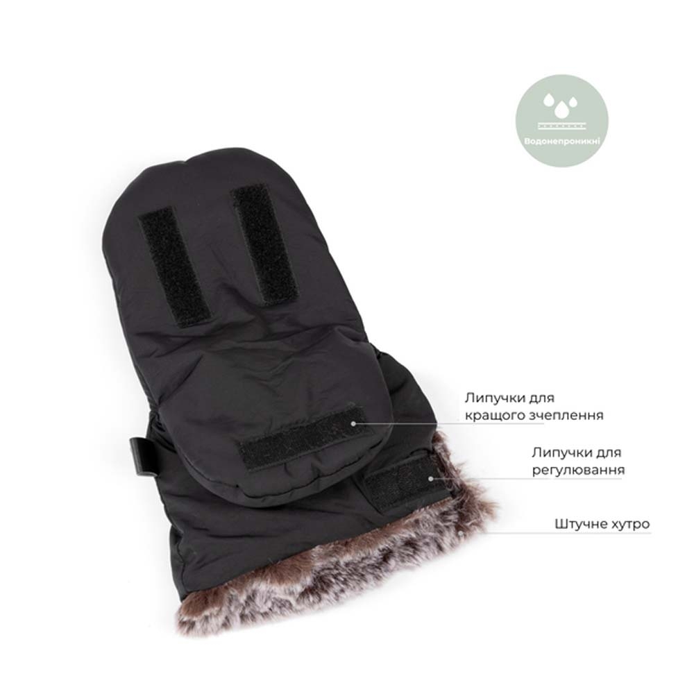 Крім того, ремінець на липучці ззаду дозволяє надійно прикріпити рукавички до ручки коляски, щоб вони залишалися на місці та готові до використання у будь-який час.