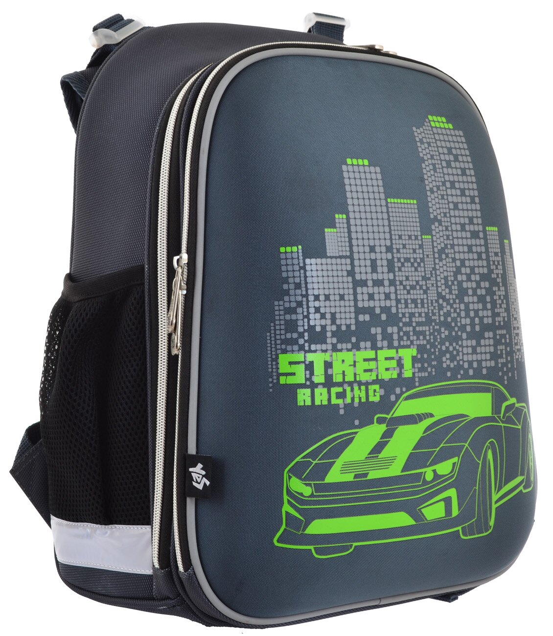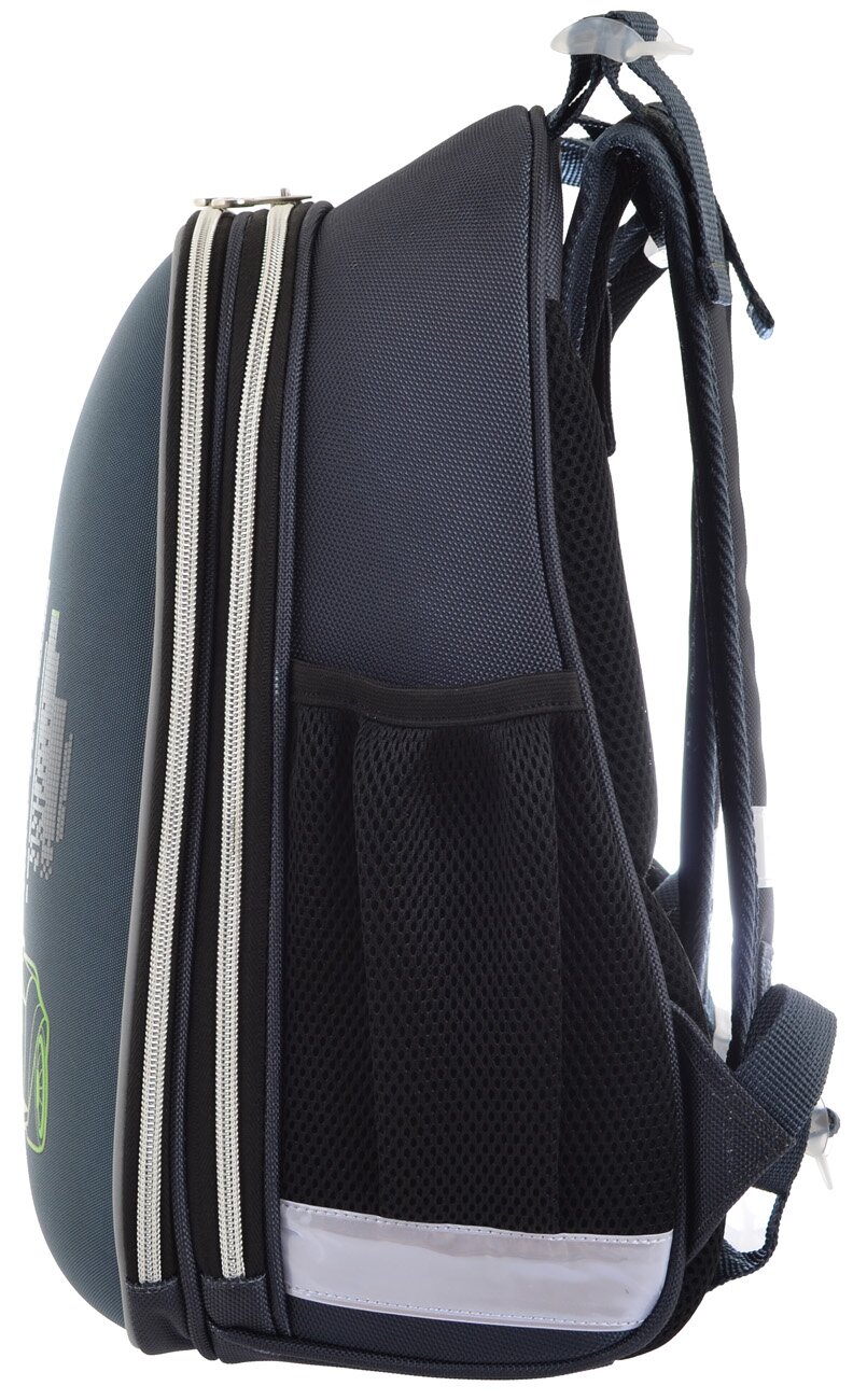 Міцний жорсткокаркасний рюкзак на два відділення. Передня панель виконана в стилі "панцир", що не деформується при легкому натисканні та зберігає форму навіть при нерівномірному завантаженні рюкзака. "Панцир" вироблено із цупкого EVA-матеріалу. Рюкзак повторює форму хребта, що запобігає його викривленню, сприяє формування правильної постави. Унікальна система кріплення лямок дозволяє відрегулювати максимально комфортну висоту по спині дитини.Є додаткова фіксація лямок завдяки нагрудній ременю. 1 секретний відділ із сіткою для пляшки з водою та інших особистих речей. Наявність відділення для лептопа, органайзера, телефону. 6 світловідбивальних елементів. Посилене дно із захисними накладками.