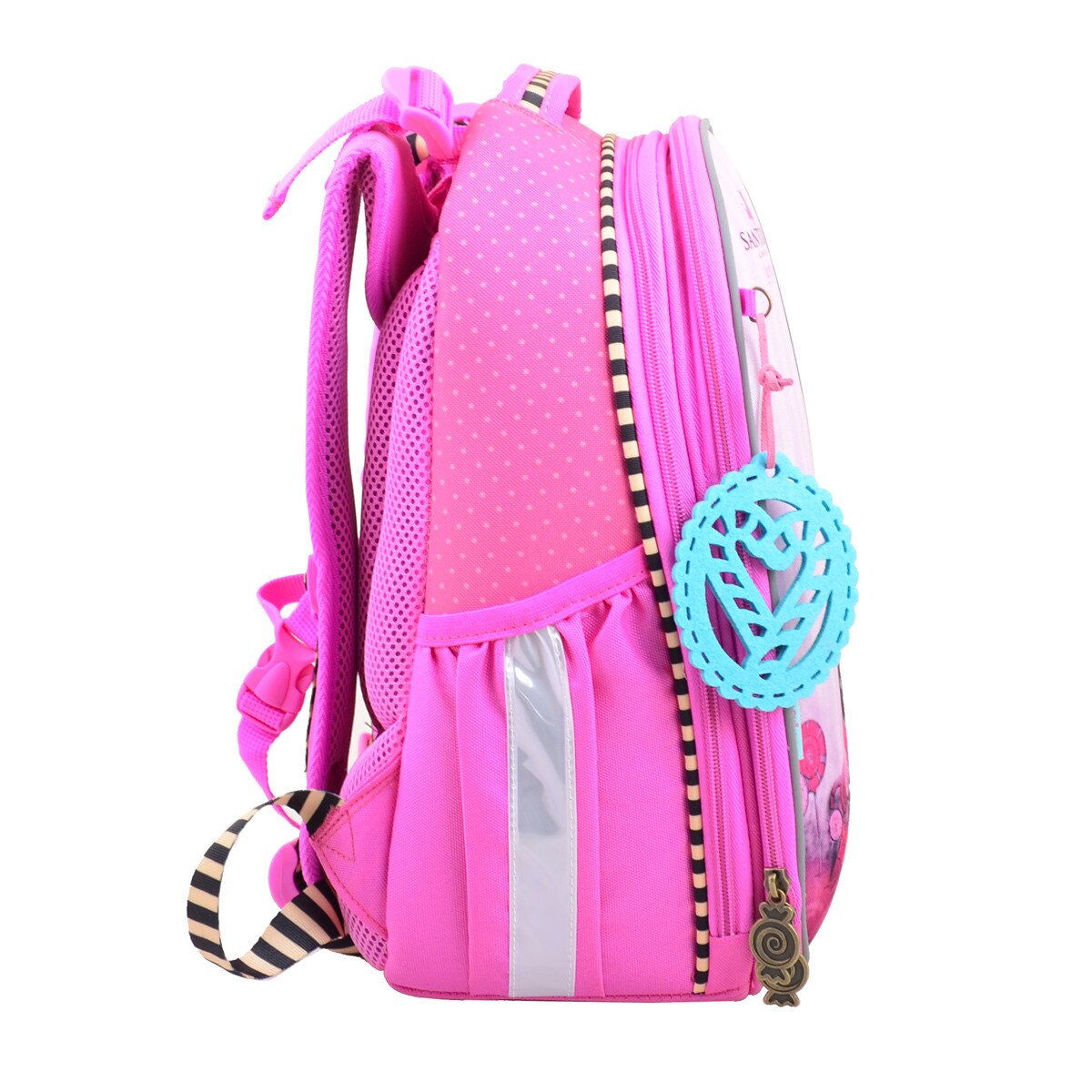 Рюкзак призначений для молодших школярів, має два основні відділи. Всередині - карман, роздільник для зошитів, а також кишеньку-гаманець. Вся поверхня рюкзака має жорсткі вставки, передня EVA-панель захищає його від пошкоджень, є 1 світловідбиваючий елемент, дно посилене щільною матерією.