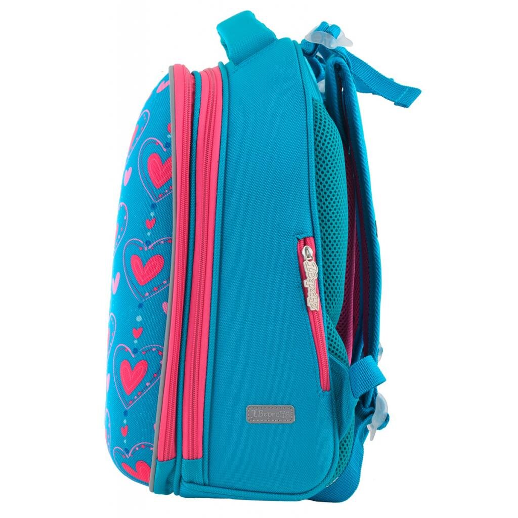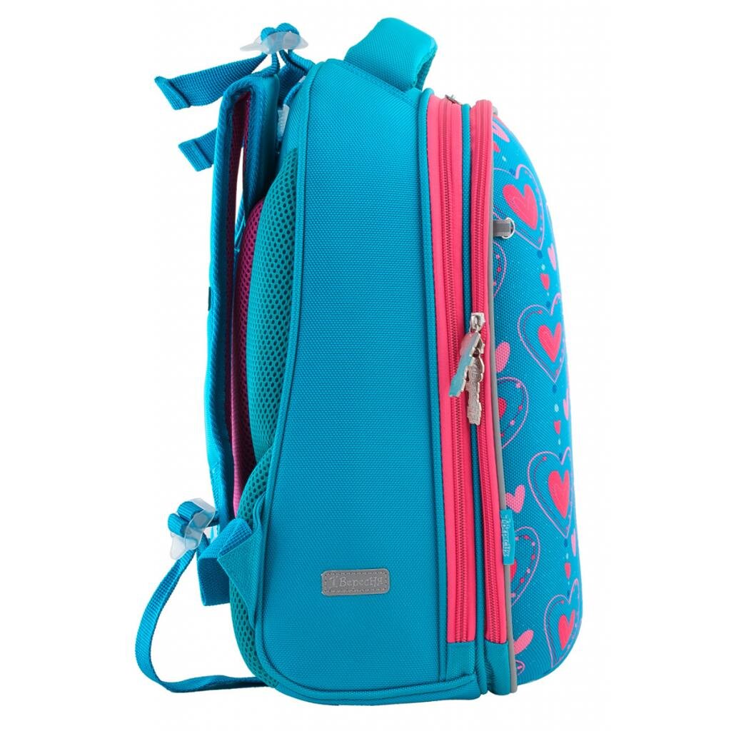 Міцний каркасний рюкзак на два відділення. Передня панель виконана в стилі “панцир”, що не деформується при легкому натисканні та зберігає форму навіть при нерівномірному завантаженні рюкзака. “Панцир” вироблено із цупкого EVA-матеріалу. Рюкзак повторює форму хребта, що запобігає його викривленню, сприяє формуванню правильної постави. Унікальна система кріплення лямок дозволяє відрегулювати максимально комфортну висоту по спині дитини.Є додаткова фiксацiя лямок завдяки нагрудному ременю. 1 секретний відділ із сіткою для пляшки з водою та інших особистих речей. Наявність відділення для лептопа, органайзера, телефона. 6 світловідбивальних елементів. Посилене дно із захисними накладками.