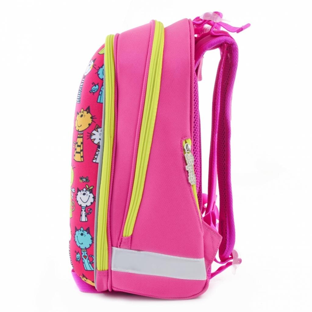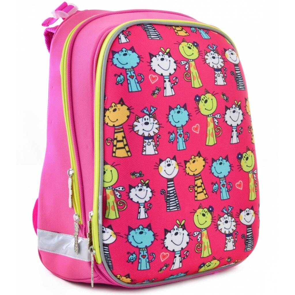 Міцний каркасний рюкзак на два відділення. Передня панель виконана в стилі “панцир”, що не деформується при легкому натисканні та зберігає форму навіть при нерівномірному завантаженні рюкзака. “Панцир” вироблено із цупкого EVA-матеріалу. Рюкзак повторює форму хребта, що запобігає його викривленню, сприяє формуванню правильної постави. Унікальна система кріплення лямок дозволяє відрегулювати максимально комфортну висоту по спині дитини.Є додаткова фiксацiя лямок завдяки нагрудному ременю. 1 секретний відділ із сіткою для пляшки з водою та інших особистих речей. Наявність відділення для лептопа, органайзера, телефона. 6 світловідбивальних елементів. Посилене дно із захисними накладками.