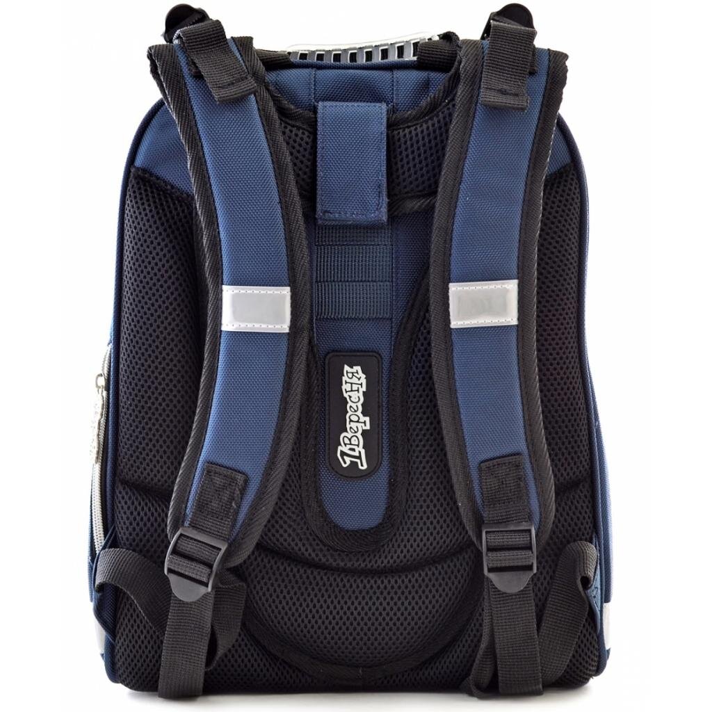 Міцний каркасний рюкзак на два відділення. Передня панель виконана в стилі “панцир”, що не деформується при легкому натисканні та зберігає форму навіть при нерівномірному завантаженні рюкзака. “Панцир” вироблено із цупкого EVA-матеріалу. Рюкзак повторює форму хребта, що запобігає його викривленню, сприяє формуванню правильної постави. Унікальна система кріплення лямок дозволяє відрегулювати максимально комфортну висоту по спині дитини.Є додаткова фiксацiя лямок завдяки нагрудному ременю. 1 секретний відділ із сіткою для пляшки з водою та інших особистих речей. Наявність відділення для лептопа, органайзера, телефона. 6 світловідбивальних елементів. Посилене дно із захисними накладками.
