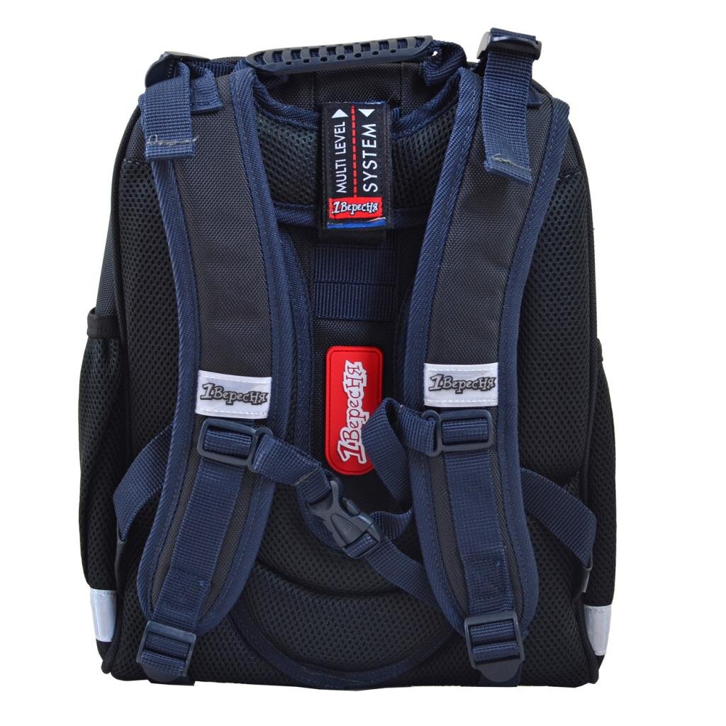 • Міцний каркасний рюкзак на два відділення. Передня панель виконана в стилі “панцир”, що не деформується при легкому натисканні та зберігає форму навіть при нерівномірному завантаженні рюкзака. “Панцир” вироблено із цупкого EVA-матеріалу. Рюкзак повторює форму хребта, що запобігає його викривленню, сприяє формуванню правильної постави. Унікальна система кріплення лямок дозволяє відрегулювати максимально комфортну висоту по спині дитини.Є додаткова фiксацiя лямок завдяки нагрудному ременю. 1 секретний відділ із сіткою для пляшки з водою та інших особистих речей. Наявність відділення для лептопа, органайзера, телефона. 6 світловідбивальних елементів. Посилене дно із захисними накладками.