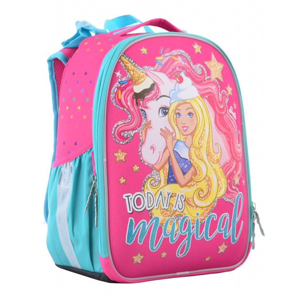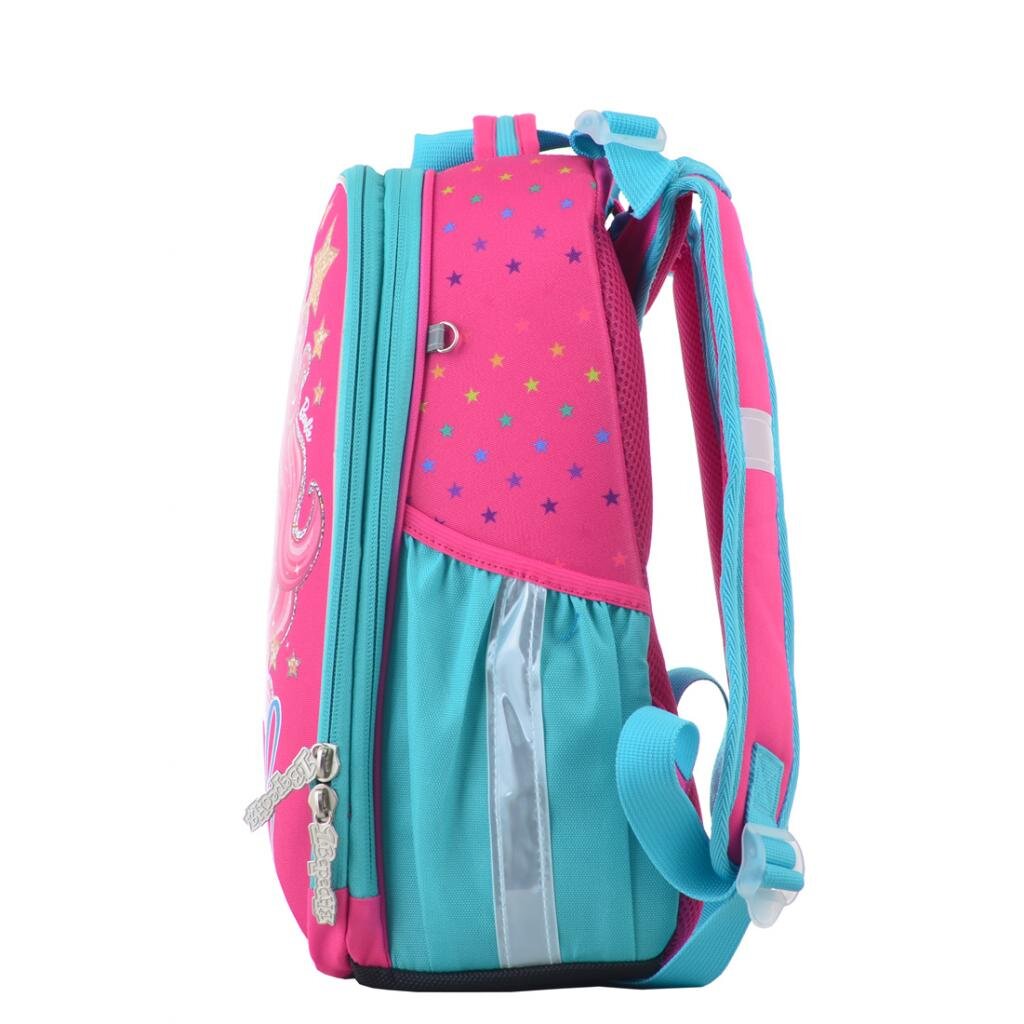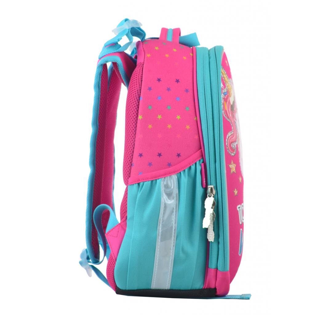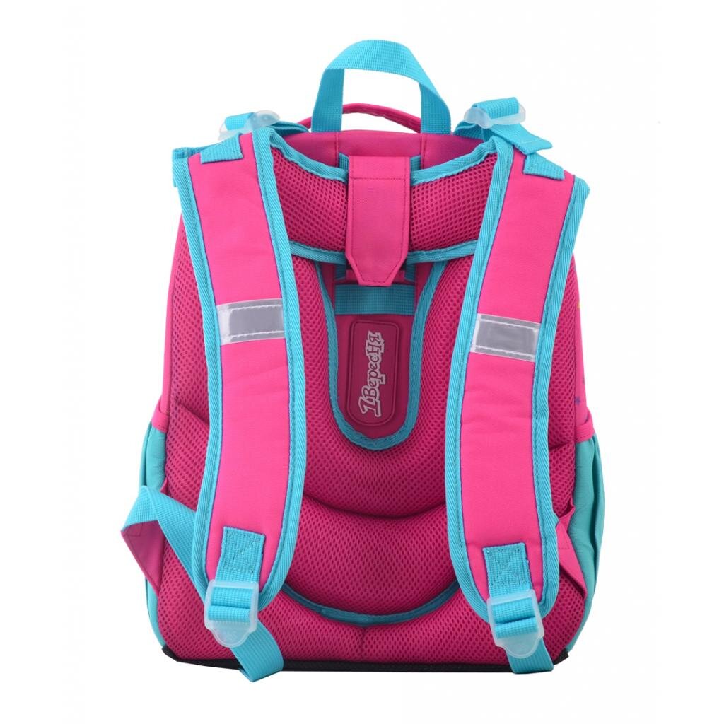Рюкзак призначений для молодших школярів, має два основних відділи. Всередині сітчаста кишеня, роздільник для зошитів, а також кишенька-гаманець. Вся поверхня рюкзака має жорсткі вставки, передня EVA-панель захищає його від пошкоджень, дно посилене цупкою матерією.