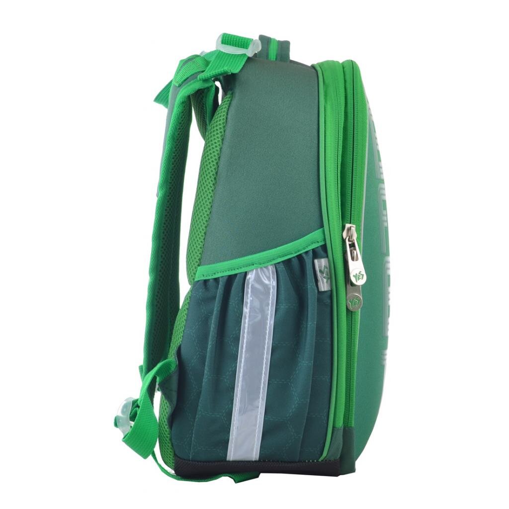 Рюкзак призначений для молодших школярів, має два основних відділи. Всередині сітчаста кишеня, роздільник для зошитів, а також кишенька-гаманець. Вся поверхня рюкзака має жорсткі вставки, передня EVA-панель захищає його від пошкоджень, дно посилене цупкою матерією.