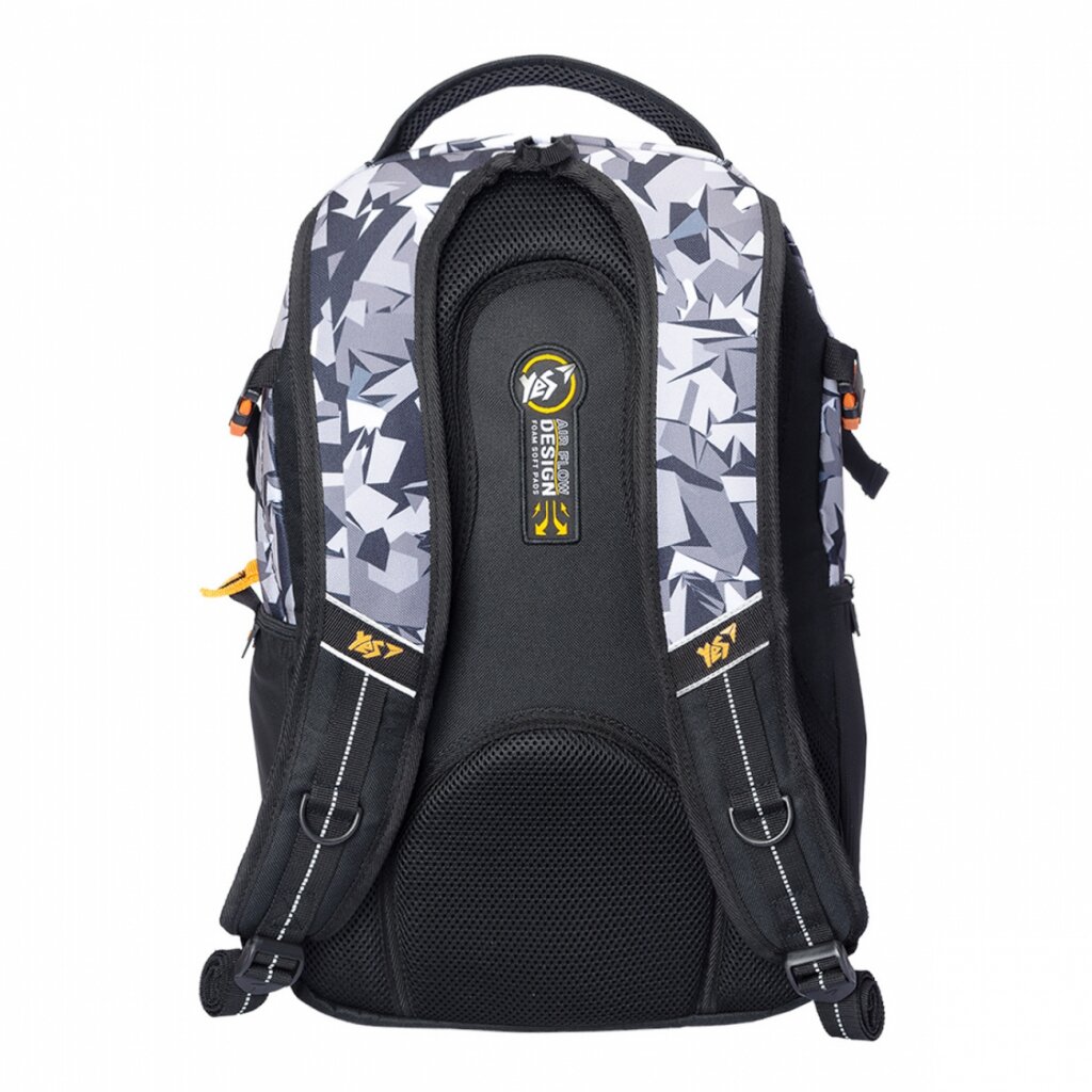 Унікальна модель Level Up торгової марки YES багатофункціональна та ергономічна. Три містких відділення і дві бічні кишені. На передній панелі є фіксатор для спортінвентаря або, наприклад, верхнього одягу. Ортопедична спинка рюкзака відповідає стандартам і зберігає поставу, з рельєфними м'якими накладками, які забезпечують повітрообмін. Лямки рюкзака, анатомічної форми "майка" не тиснуть на плечі. Щільна ручка для розміщення рюкзака на гачку. Посилене дно із захистом від бруду та пошкоджень. Склад і структура тканини перешкоджають попаданню вологи всередину рюкзака. Міцна фурнітура та світловідбиваючі елементи - для безпеки на дорозі в темний час доби.