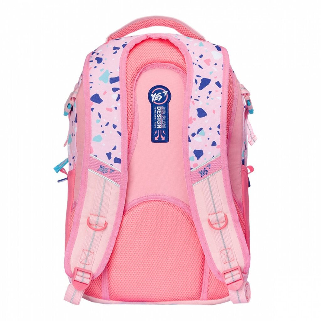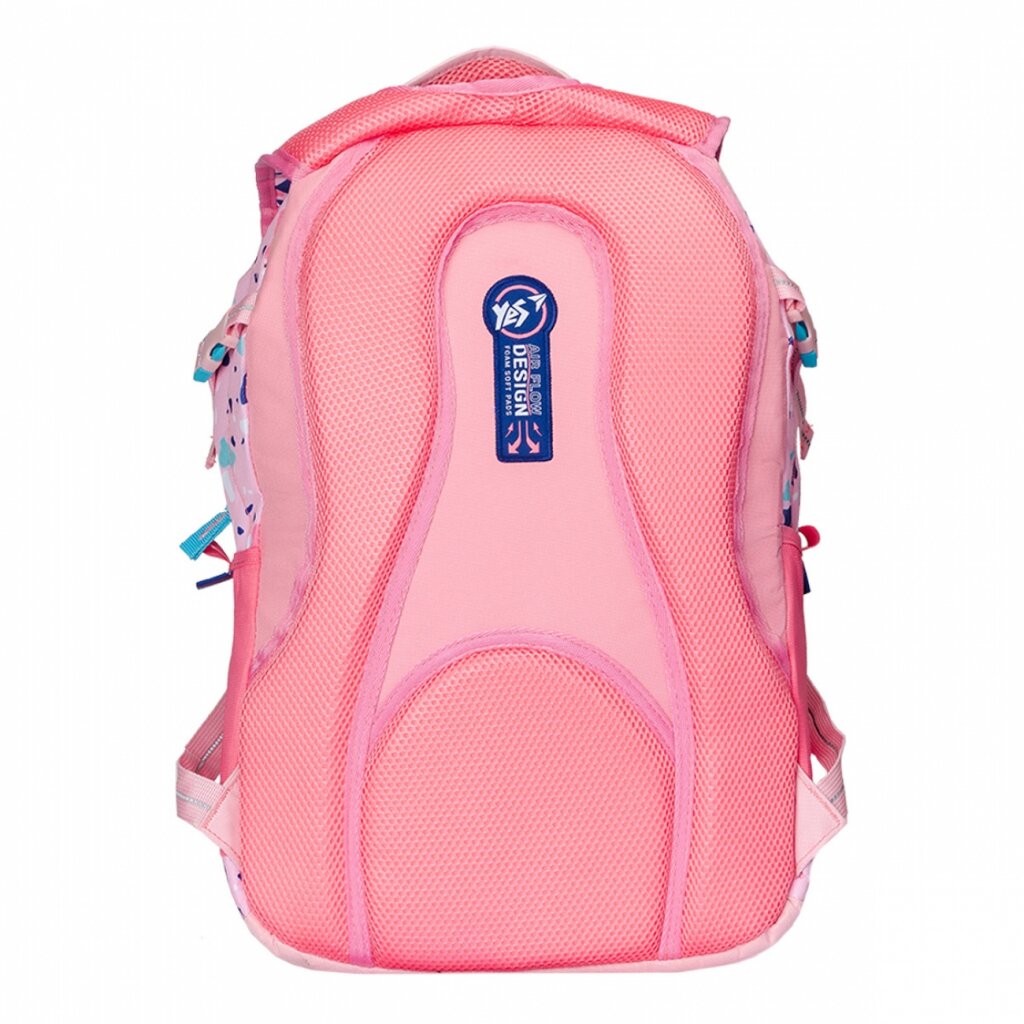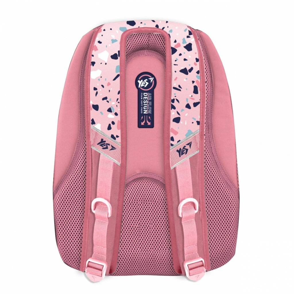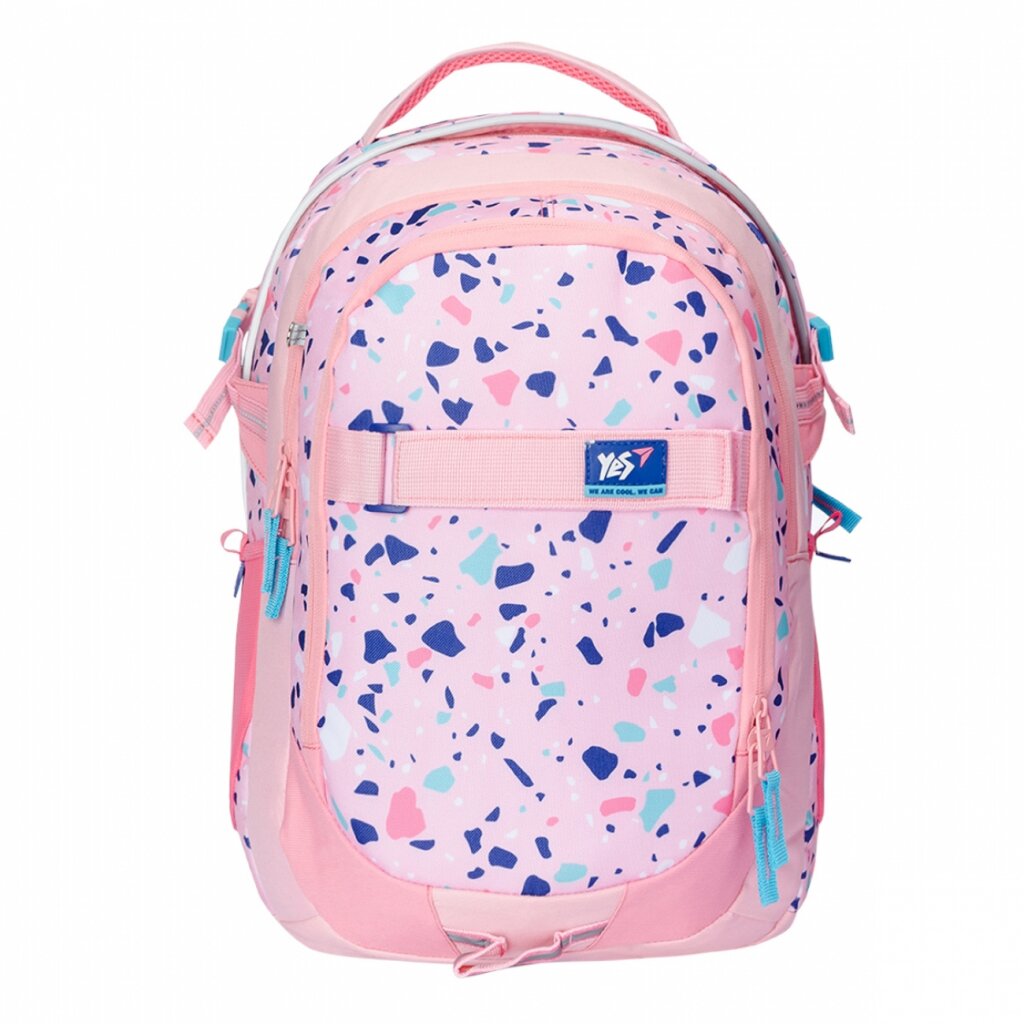 Унікальна модель Level Up торгової марки YES багатофункціональна та ергономічна. Три містких відділення і дві бічні кишені. На передній панелі є фіксатор для спортінвентаря або, наприклад, верхнього одягу. Ортопедична спинка рюкзака відповідає стандартам і зберігає поставу, з рельєфними м'якими накладками, які забезпечують повітрообмін. Лямки рюкзака, анатомічної форми "майка" не тиснуть на плечі. Щільна ручка для розміщення рюкзака на гачку. Посилене дно із захистом від бруду та пошкоджень. Склад і структура тканини перешкоджають попаданню вологи всередину рюкзака. Міцна фурнітура та світловідбиваючі елементи - для безпеки на дорозі в темний час доби.