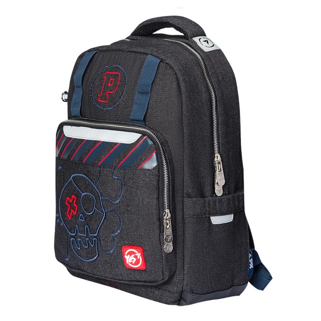 Модель має одне об'ємне відділення з відділом для шкільного приладдя. Три кишені: велика кишеня з блискавкою на передній панелі, дві кишені по боках. Посилена пом'якшуючими накладками спинка, широкі лямки анатомічної форми з поперечним ременем. Дно рюкзака ущільнене, із захистом від бруду і вологи. М'яка ущільнена ручка і ручка-петля для перенесення і розміщення рюкзака на гачку. Світловідбиваючі нашивки для безпеки на дорозі в темний час доби. Декоративні нашивні елементи і вишивка - чудове доповнення якості та функціоналу моделі.
