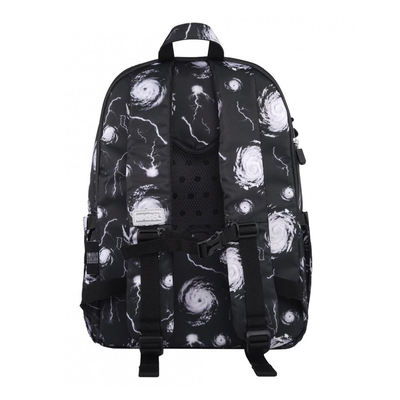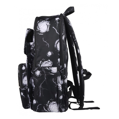 Рюкзак Upixel Influencers Hurricane чорний — шкільний рюкзак чорного кольору зі стильним білим принтом і піксельною панеллю на передній кишені.