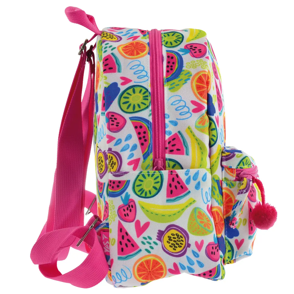 Стильний рюкзак "Juicy Fruit" стане в нагоді для будь-якого випадку. Кишеня на блискавці збереже речі від втрати, а у додаткові кишені для мобільного та дрібниць помістяться всі необхідні речі. Рюкзак зручно тримати або підвішувати - за ручку. Додаткова прикраса - аксесуар у вигляді помпона. Основний матеріал: полотняна тканина, канвас.