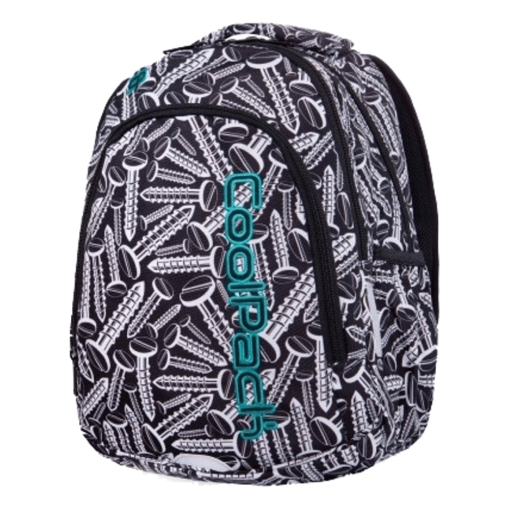CoolPack (КулПак) Prime Screws - ультралегкий водонепроникний рюкзак з посиленим дном, який відмінно підійде учневі середньої школи. У комплекті йде сумка-холодильник для продуктів. Два основних відділення на двосторонній блискавці, в які легко поміщається А4. Є додаткові кишені. Широкі м'які лямки регулюються. Надійні застібки-блискавки підходять для частого використання. Жорстка анатомічна спинка EVA. Оснащений світловідбивачами для підвищення безпеки, виходом для навушників.
