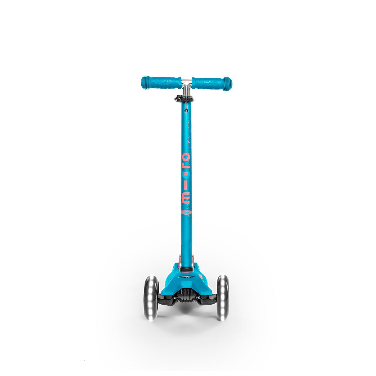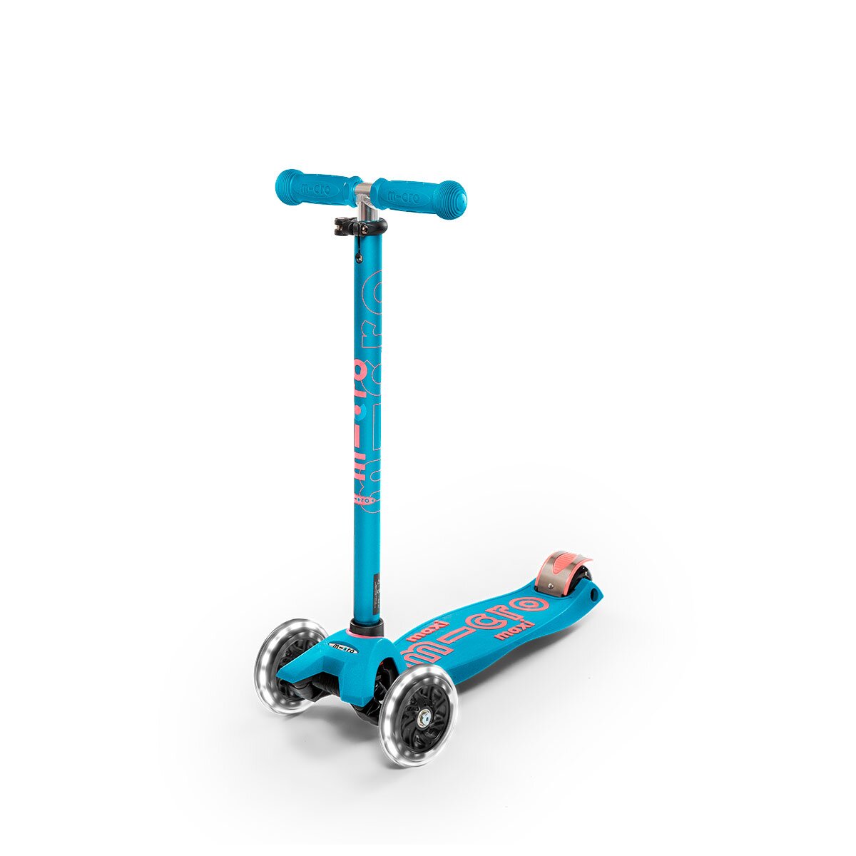 Відкривайте нові красиві місця, катаючись на самокаті Micro Maxi Deluxe Led. Модель кольору "аква" сподобається як хлопчикам, так і дівчаткам.