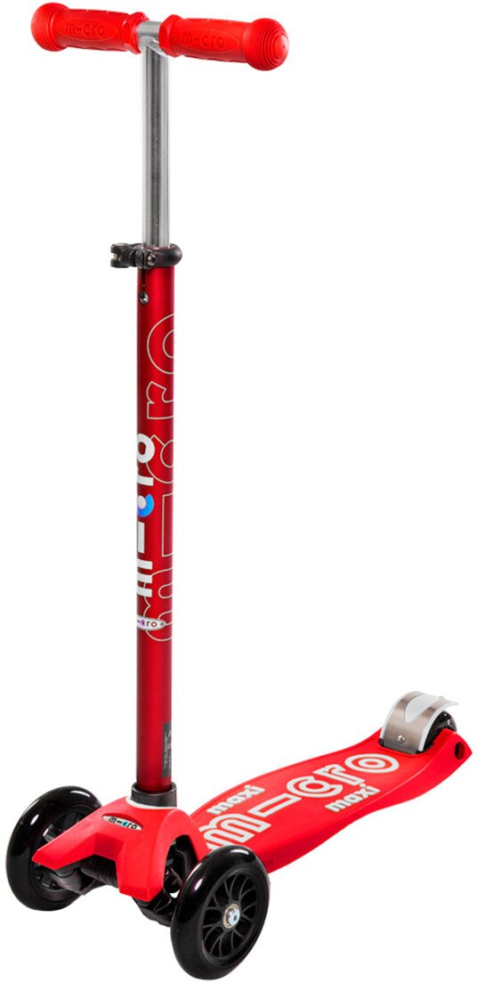 Самокати Micro Maxi Deluxe розроблені для дітей дошкільного та молодшого шкільного віку. Їхньою відмітною особливістю від класичних самокатів Micro Maxi є наявність пофарбованого в колір підніжки, телескопічного рульового стояка та гальмівної пластини, а також змінений дизайн деки. Вона має додаткові виступальні елементи подібні до логотипа micro, які знижують ковзання ноги на деці під час підвищеної вологості або дощу. Основа підніжки самоката виготовлена з міцного матеріалу, посиленого скловолокном.