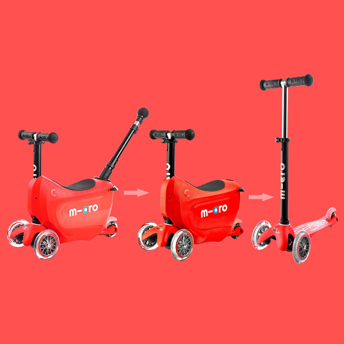 Самокати серії Mini 2go Micro Deluxe є найбільш досконалими та міцними самокатами для дітей, які щойно навчилися ходити. На міжнародних виставках вони неодноразово визнавалися "самокатами року" серед дітей та батьків. Ключові відмінності цієї серії: наявність ручки батьківського контролю; висувне кермо підвищеної вантажопідйомності; спеціальне сидіння, під яким знаходиться простір для зберігання речей – справжня знахідка для дітей і батьків. Тепер усі іграшки, харчі для перекусу та інші потрібні дрібниці на прогулянці завжди будуть під рукою. Протягом зростання дитини ручку контроля можна зняти і дитина пробуватиме самостійно управляти біговелом. Згодом сидіння також можна зняти і продовжити використати Micro Mini 2go Deluxe в якості самоката.