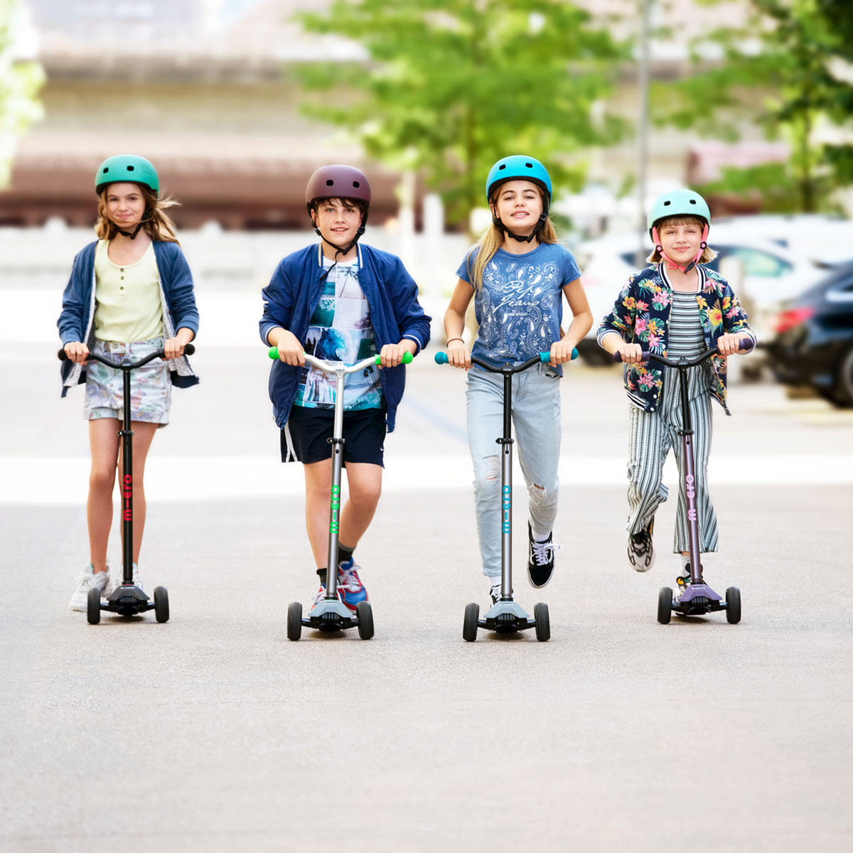 Дитячий самокат - це не лише активне фізичне навантаження. З його допомогою у дитини покращуються баланс, координація і моторика. І для цього самокат має бути високотехнологічним і безпечним. Тому самокати Micro Maxi Deluxe мають ряд особливостей: оснащені запатентованим унікальним механізмом нахилу і повороту керма Maxi Micro; використовують особливий тип пластику з закругленими краями разом із Т-подібною ручкою, що робить його безпечним для дітей і дозволяє уникнути травм; стійка виконана з кольорового анодованого алюмінію. Це означає, що вона не лише зовні виділятиметься серед інших, але і витримає найжорсткіші удари при катанні; протиковзна силіконова підніжка має додаткові виступаючі елементи у вигляді логотипу Micro, які знижують ковзання ноги на деці при підвищеній вологості або під час дощу; модернізовані задні гальма забезпечать максимальний рівень безпеки; поліуретанові колеса з підшипниками стандарту АВЕС 9 дозволять пересуватися без шуму; додатково самокат позаду оснащений світловідбивними елементами.