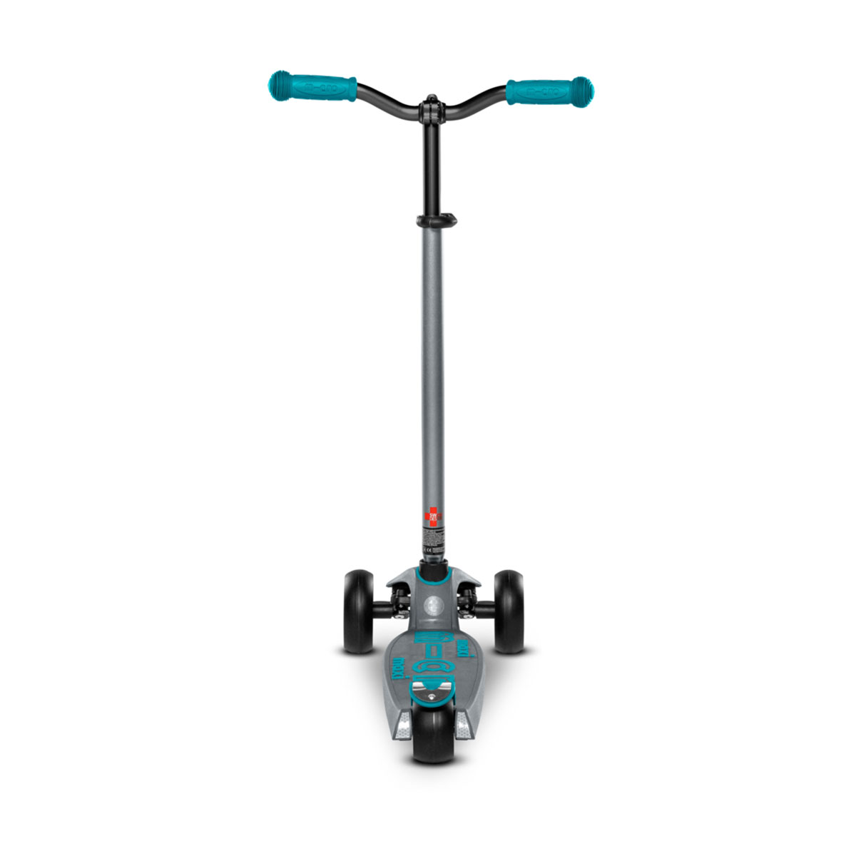 Характеристики: самокат підходить для дітей дошкільного віку та школярів (від 5 до 12 років) зростом до 150 сm і масою тіла до 50 kg; регульована по висоті телескопічна рульова стійка (71-90 сm); міцна дека, посилена скловолокном; розміри деки - 33х13,5х6 cm; дитячий триколісний самокат; Т-подібна стійка, яку можна від'єднати для зручного транспортування самоката; високоякісні гальма, які мають сталеву пружинну вставку і не нагріваються при гальмуванні; колеса виготовлені з високоякісного поліуретану і укомплектовані підшипниками стандарту АВЕС 9, що забезпечує безшумне і комфортне пересування по тротуару або парку; вага самоката – 2,9 kg. Колір: сірий та аква.