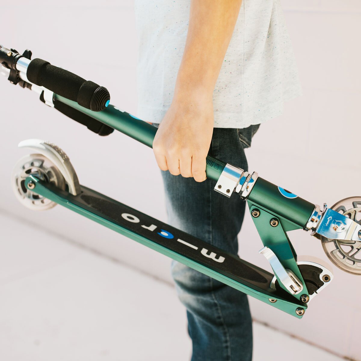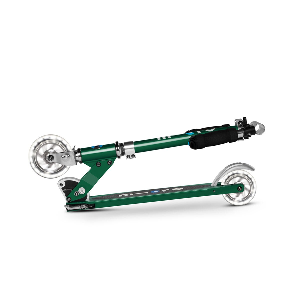 Самокат MICRO серії "Sprite LED" ЗЕЛЕНИЙ ЛІС досконалий та міцний двоколісний самокат. Він оснащений колесами, що світяться та складною рамою. Виробник - швейцарська компанія Micro Mobility Systems AG, всесвітньо відома у виробництві біговелів, самокатів та аксесуарів для них. Всі деталі зроблені з нетоксичних матеріалів, що підтверджується наявністю протоколів випробувань на відповідність європейським стандартам якості. Крім цього, кожен аксесуар або самокат проходить величезну кількість випробувань на надійність і безпеку, щоб споживач міг отримати якісний і довговічний товар.