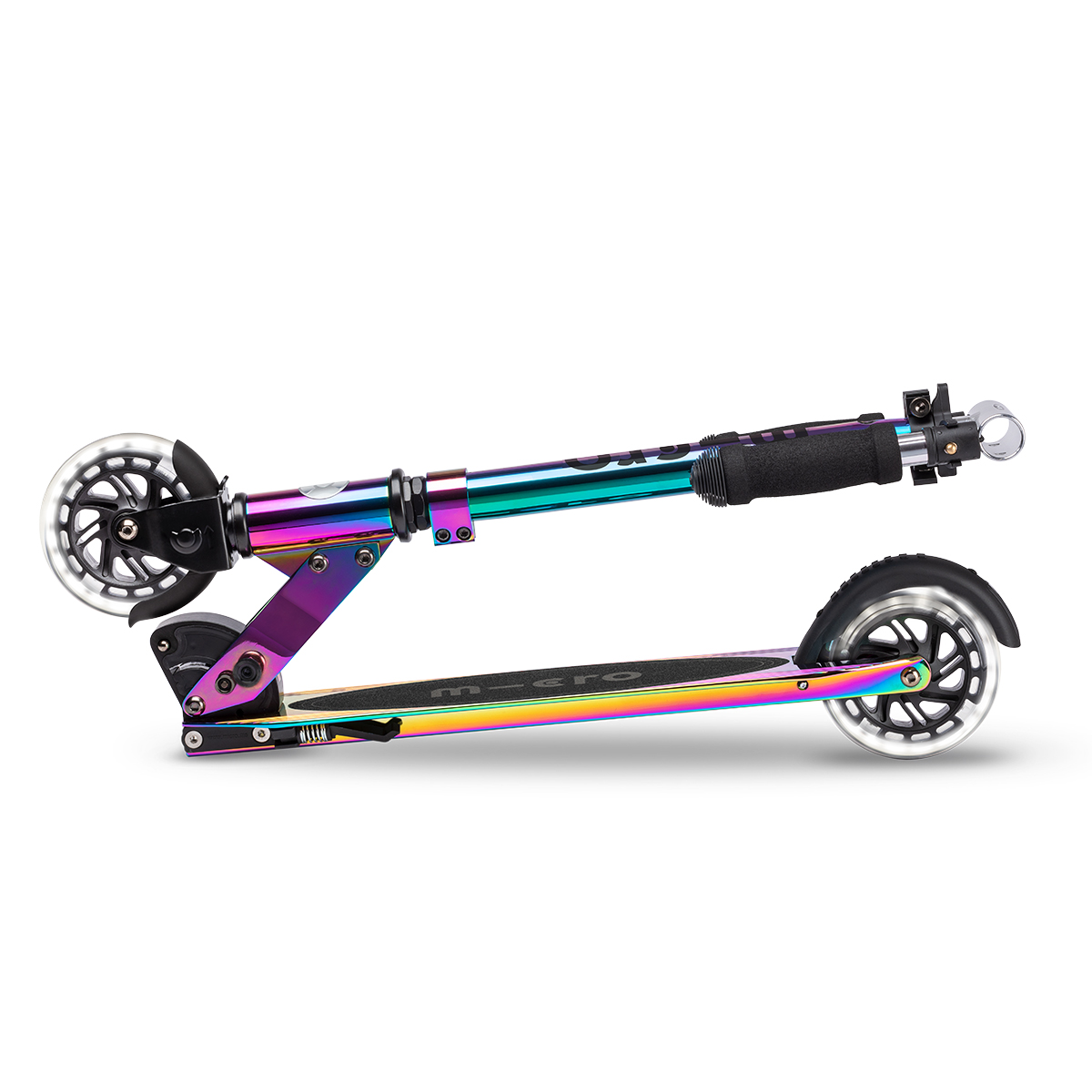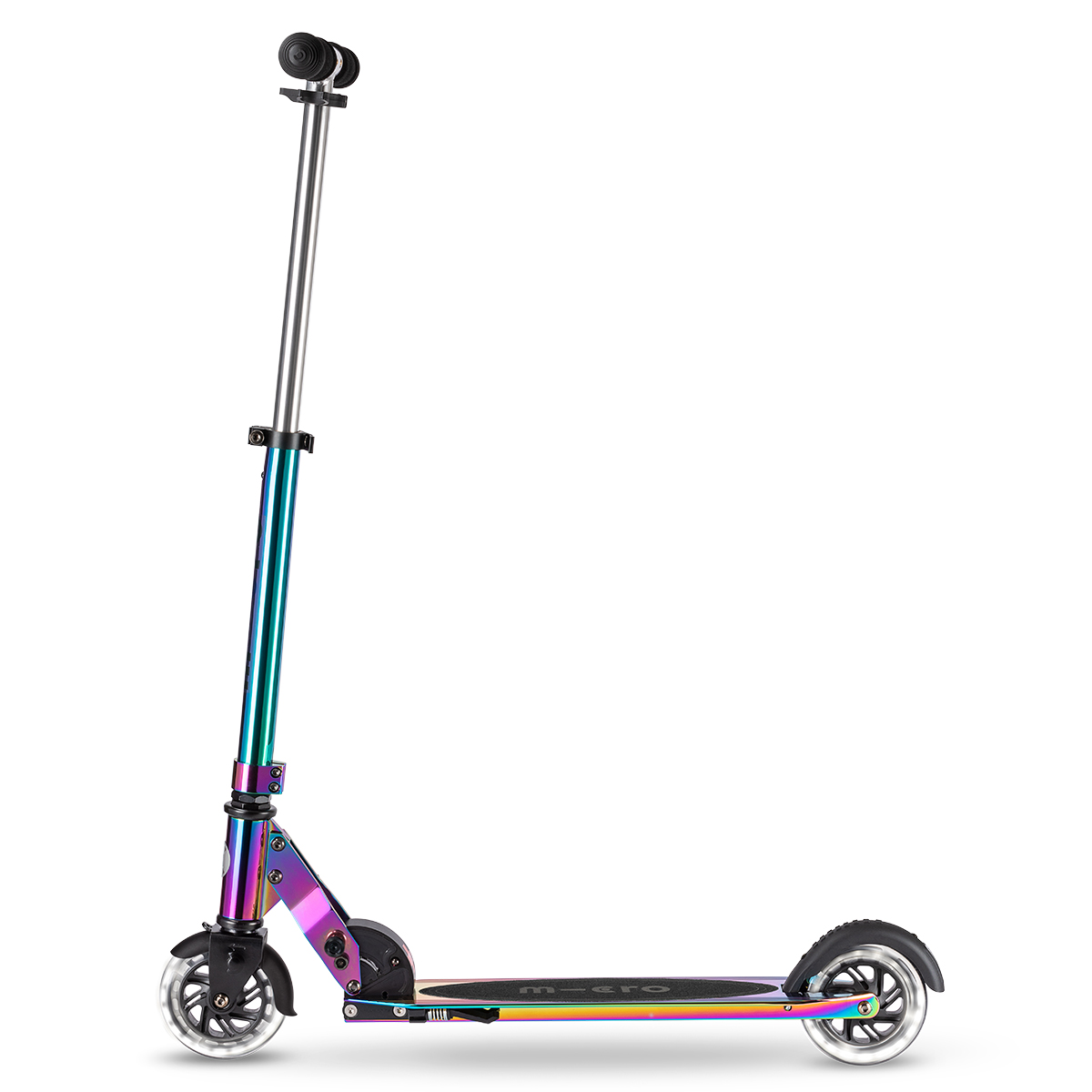 Самокат MICRO серії 'Sprite LED' - НЕОХРОМ - досконалий та міцний двоколісний самокат. Він оснащений колесами, що світяться, та складною рамою.