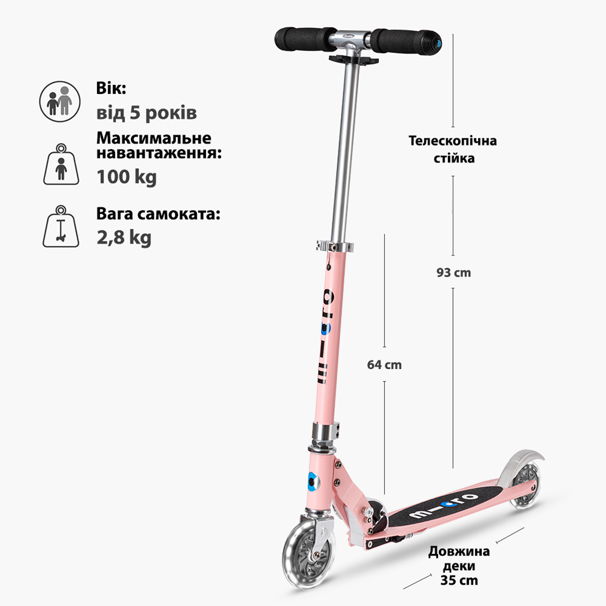 Двоколісний самокат MICRO серії «Sprite LED» - НЕОНОВА ТРОЯНДА – досконалий, міцний та швидкий.