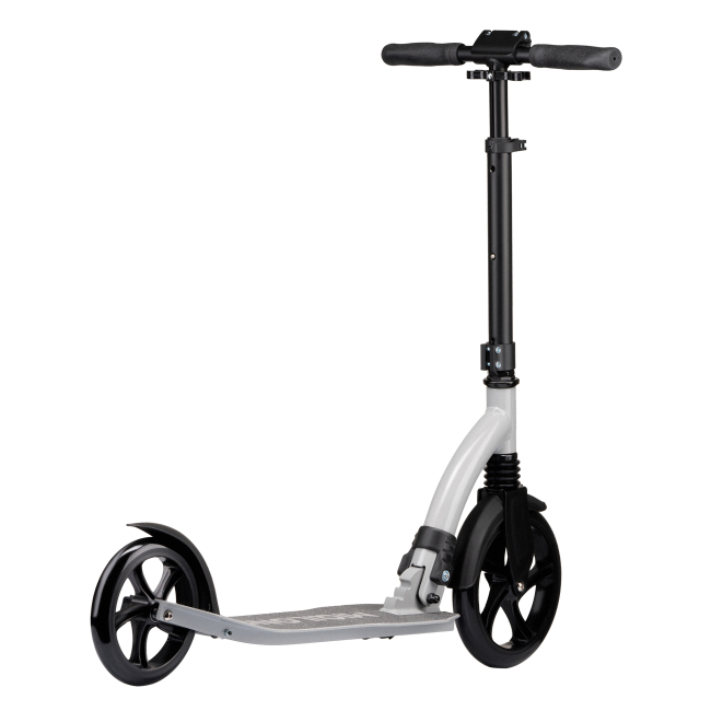Для зручності зберігання та транспортування самокат повністю складається, включаючи ручки.