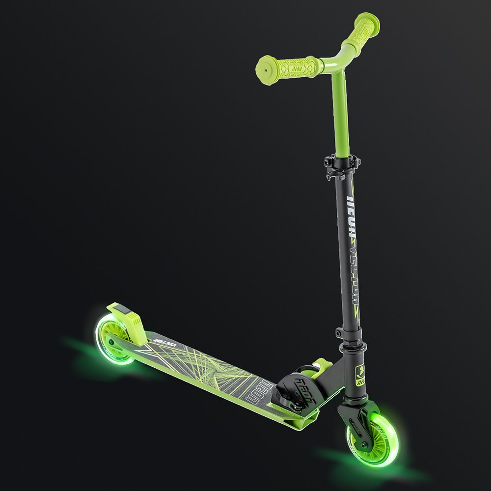 Легка рама і комфортне керування роблять Neon Vector відмінним варіантом для першого 2-Вух колісного самоката. Беріть його на прогулянки і розмалюйте околиці яскравим підсвічуванням коліс. Neon Vector - це витончений і легкий самокат. Невеликі колеса і заднє гальмо роблять цей самокат одним з найбільш маневруючим в своєму класі і максимально універсальним для повсякденного використання.