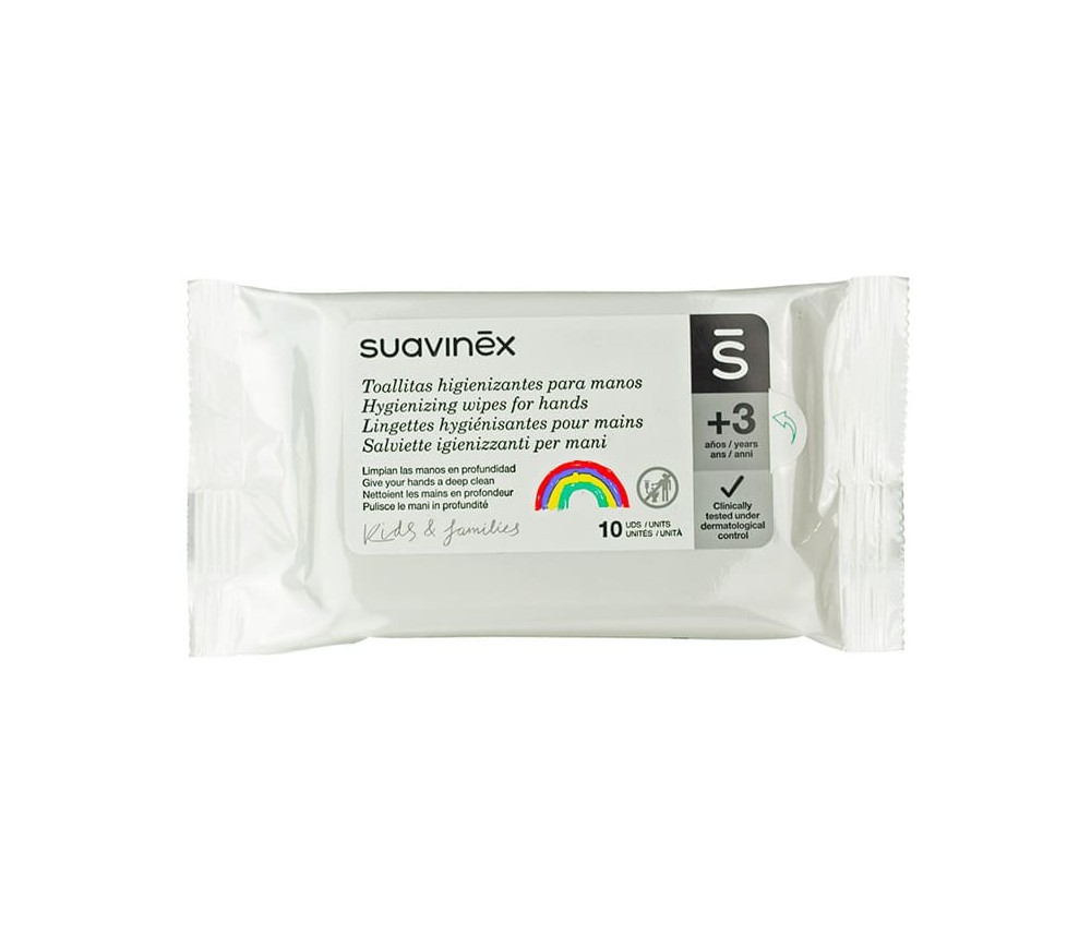 Дезінфікуючі серветки з антисептичним ефектом для рук Suavinex для дітей та сім'ї. Вони глибоко очищають руки.