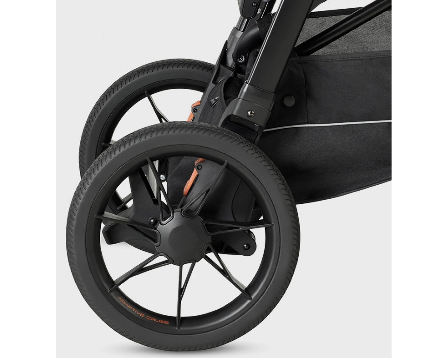 Полегшене шасі, що забезпечує м'якість ходу, у поєднанні з люлькою або прогулянковим блоком дозволяє гуляти з маленькою дитиною і по стежках парків, і по бетонних мостових, і асфальтованих тротуарів. Шасі в цій моделі виконано з алюмінію. Завдяки цьому коляска має невелику вагу. Передні колеса поворотні, що робить цю модель маневреною. Вони мають діаметр 19 сантиметрів. Великі задні колеса забезпечують чудову прохідність. Їхній діаметр становить 26 сантиметрів.