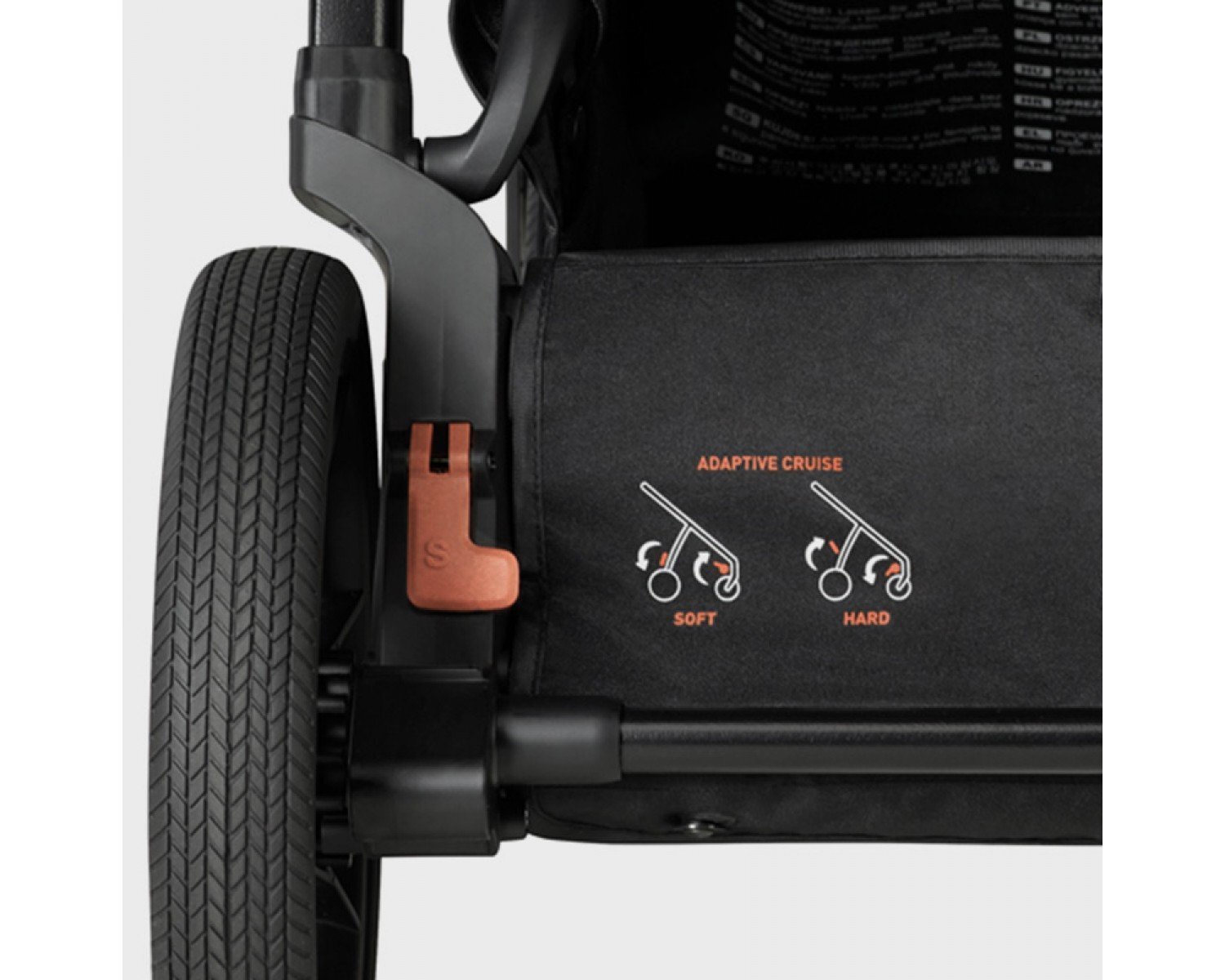 Коляска завдяки системі амортизації відрізняється плавним м'яким ходом на будь-якому дорожньому покритті. Під сидінням є місткий кошик для покупок. Щоб убезпечити її вміст від сторонніх поглядів та випадкового випадання, виробник оснастив її застібкою-блискавкою.