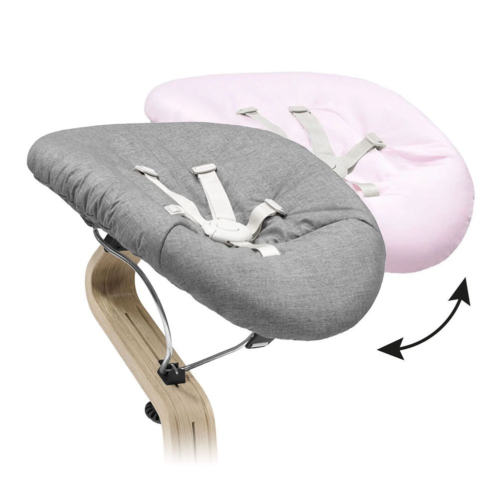 Шезлонг Stokke® Nomi® Newborn Black/Grey Pink розроблено для дітей від народження до 6 місяців (вагою до 9 кг). Використовується з інноваційними стільчиками Stokke® Nomi® у скандинавському дизайні (стільчик з натуральної деревини купується окремо: горіх, дуб та бук).