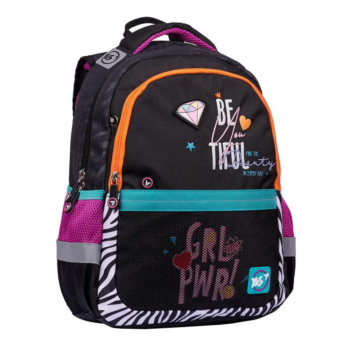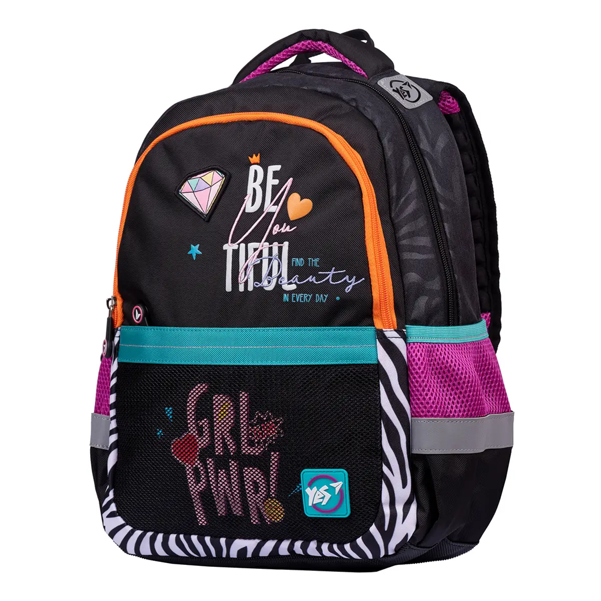 Шкільний рюкзак для дівчинки, модель S-53, торгової марки YES вмістить все необхідне шкільне приладдя і стане стильним аксесуаром для юної модниці. Модель рюкзака із інноваційною системою 3S. Завдяки впровадженої розробці суттєво знижується навантаження на хребет, мінімізується тиск на плечі при ходьбі.