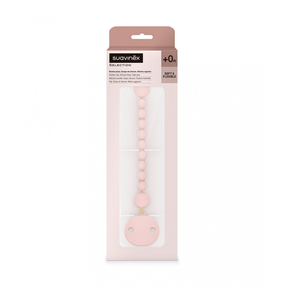 Силіконова кліпса для пустушки Suavinex Colour Essence - затискач виготовлений з безпечного медичного силікону у вигляді ланцюжка зі з'єднаними намистинами, що запобігає ковтанню та задуху.